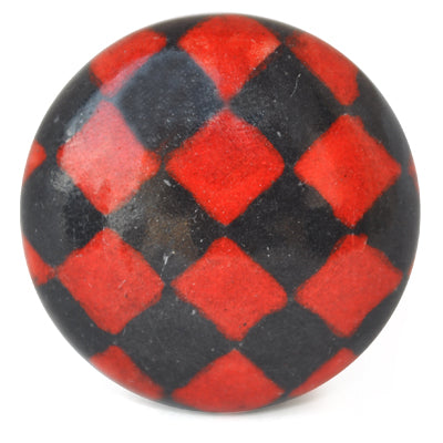 Black And Red Checkerboard Ceramic Blue Pottery Drawer Knob