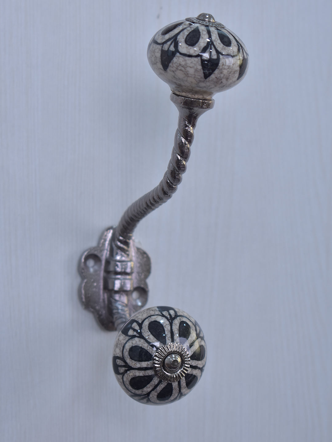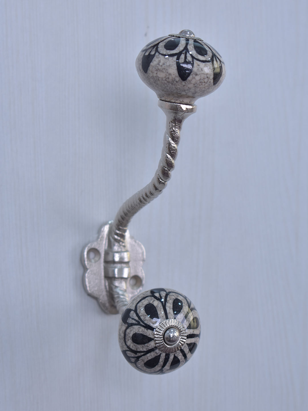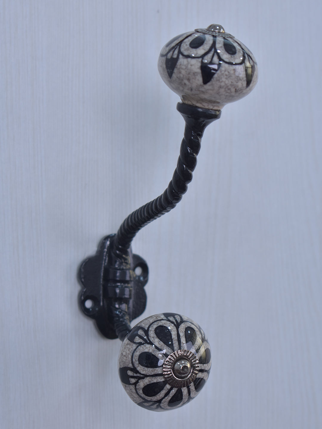 Black Design Ceramic Cabinet Knob With Metal Wall Hanger