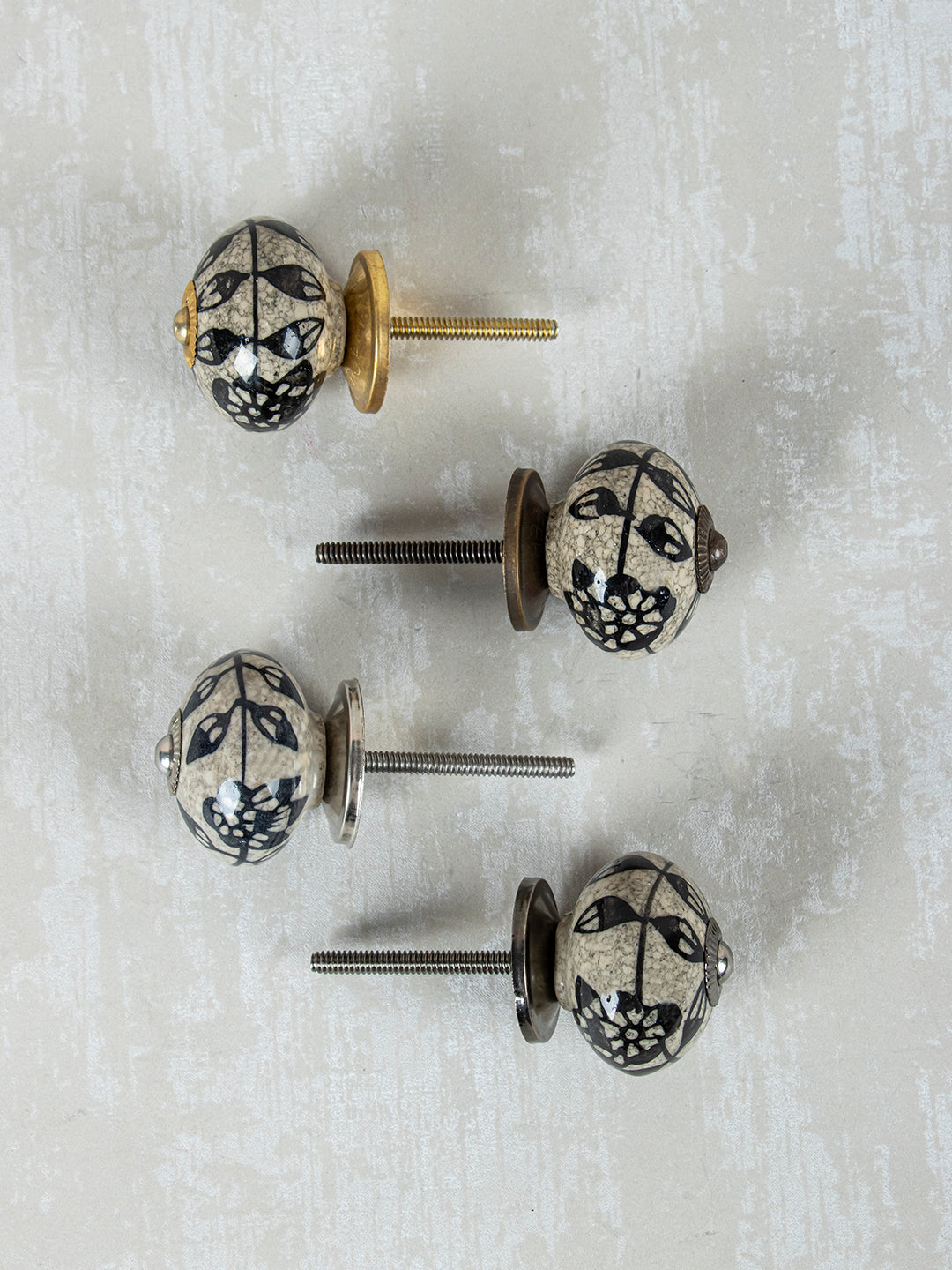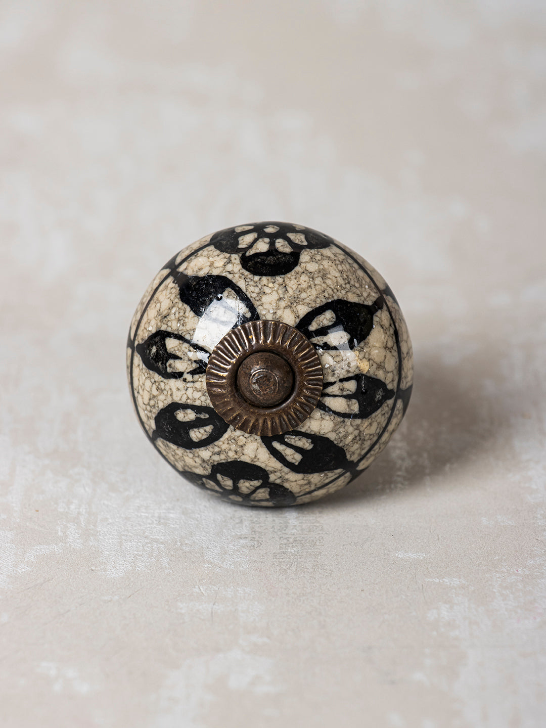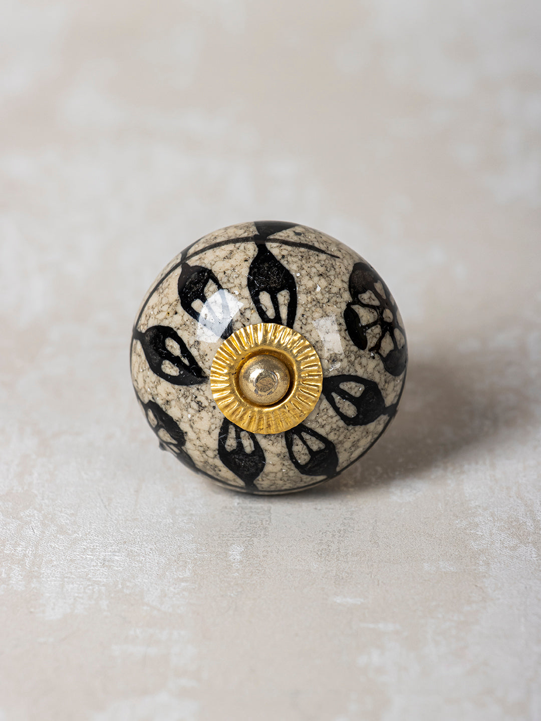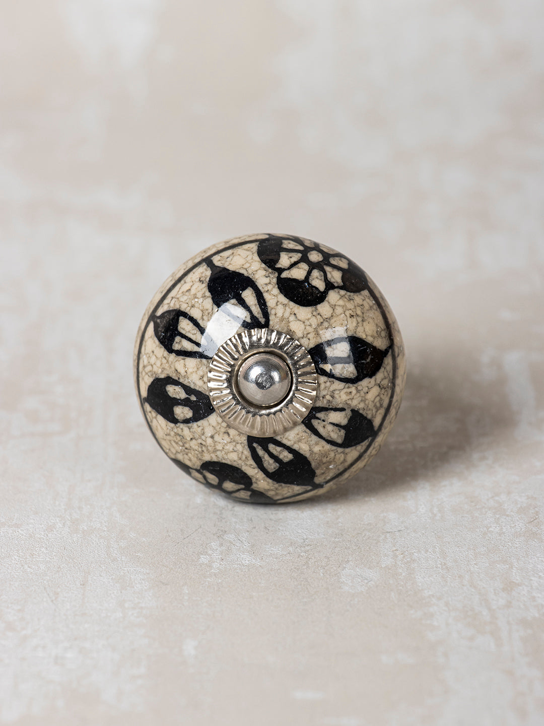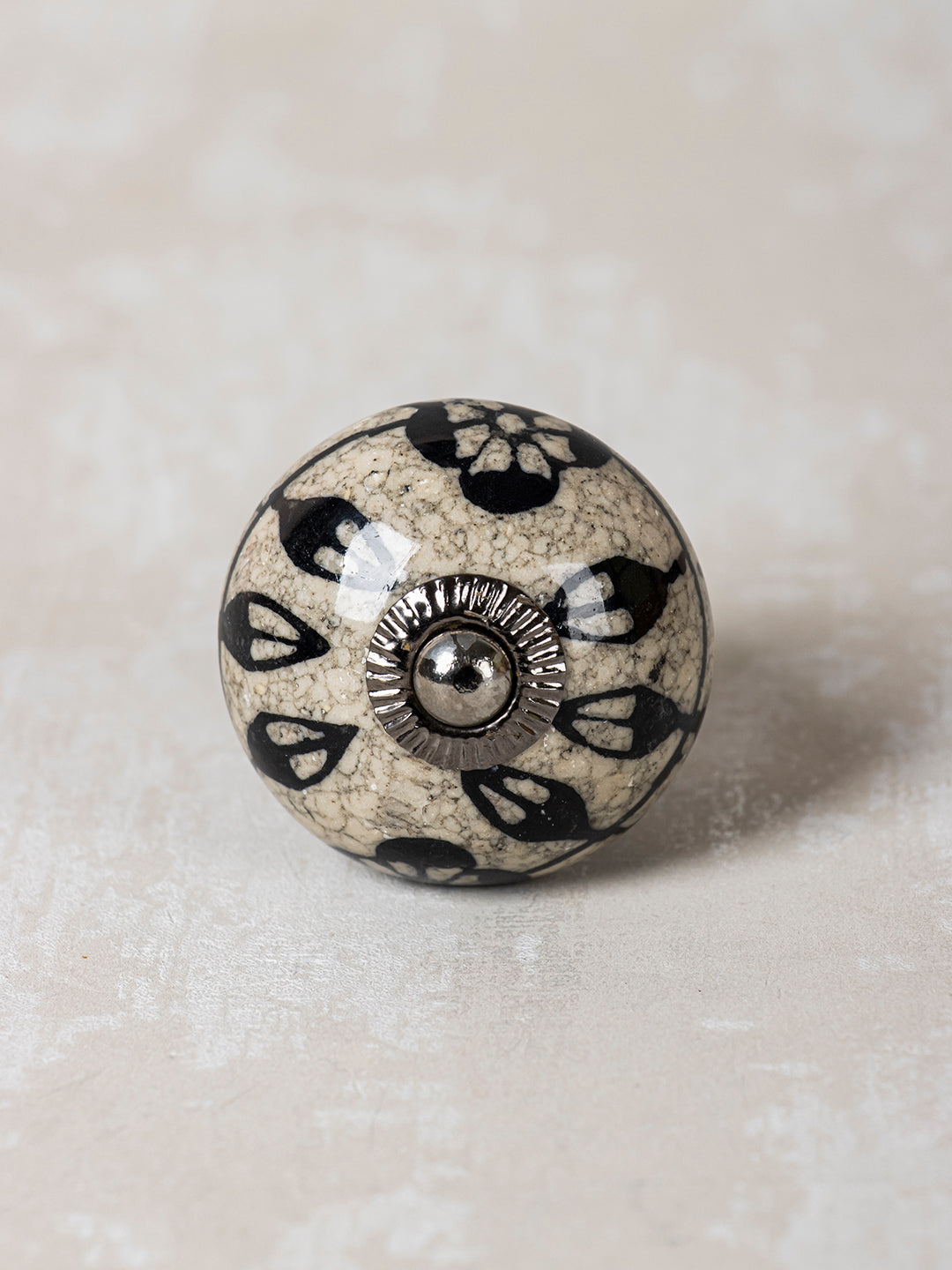 Black Leaf and Flower On Round Ceramic Cabinet Knob