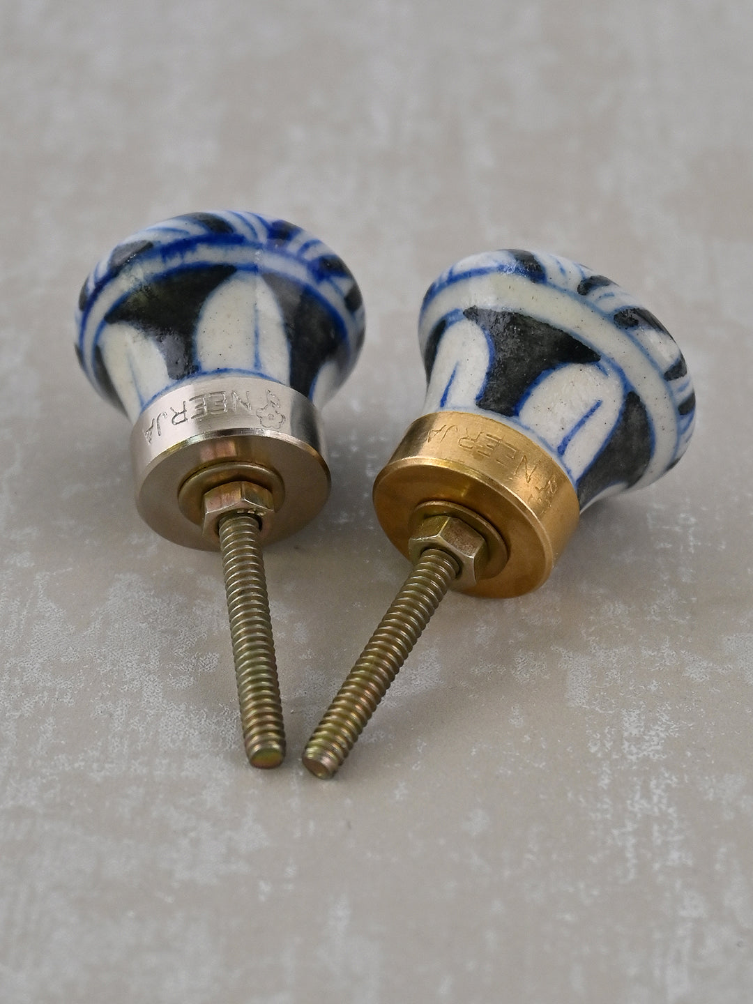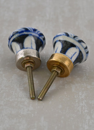 Black & White Design Blue Pottery Drawer Knob