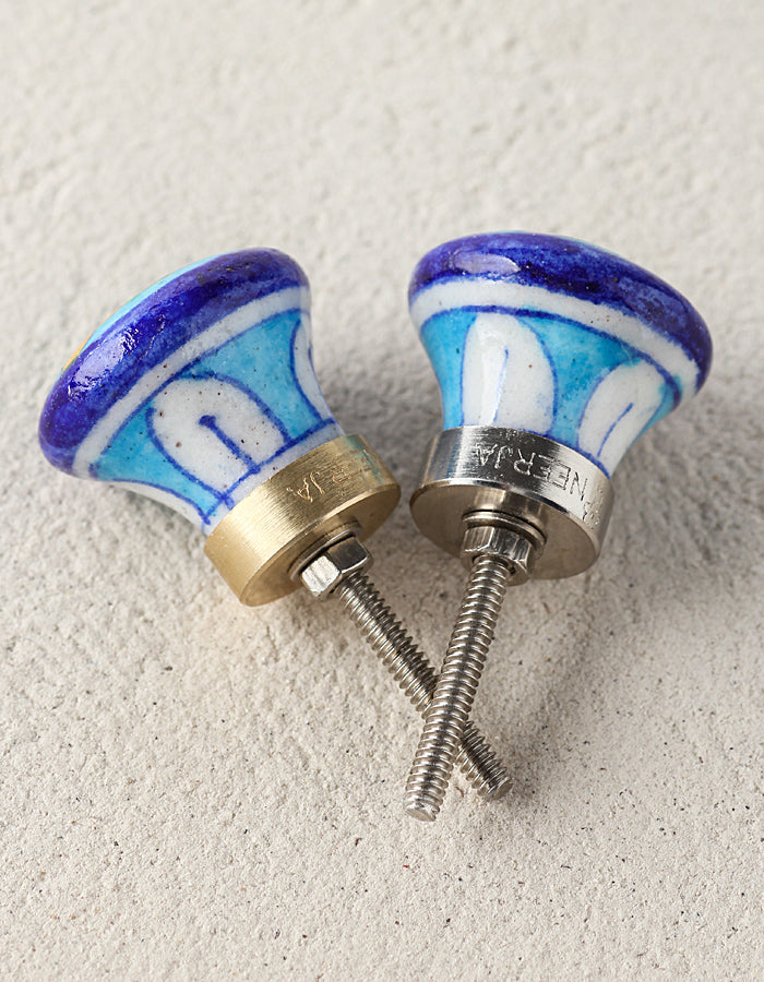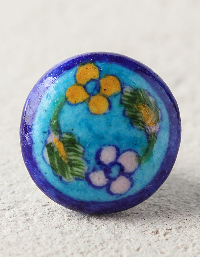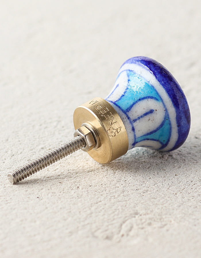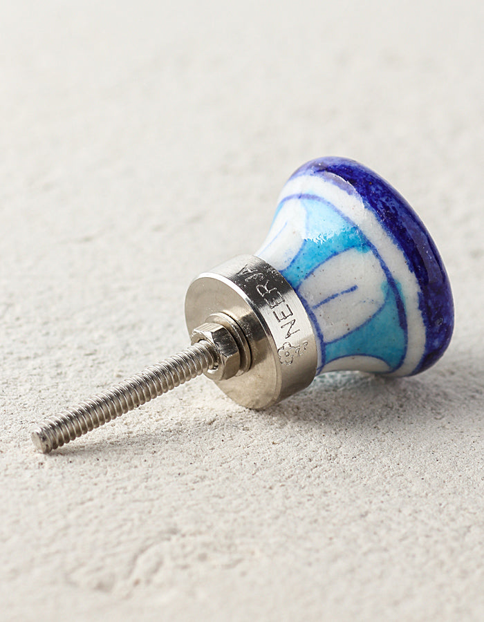 Blue And Turquoise Ceramic Blue Pottery Door knob With Multicolor Print