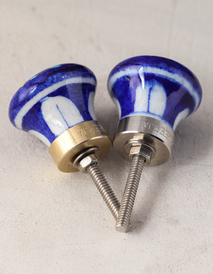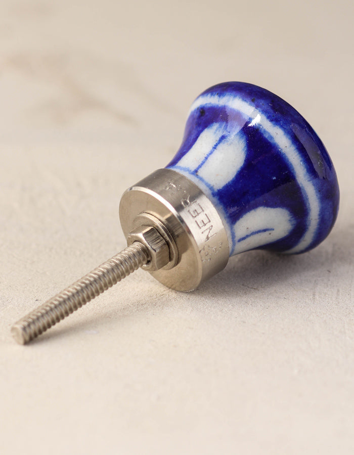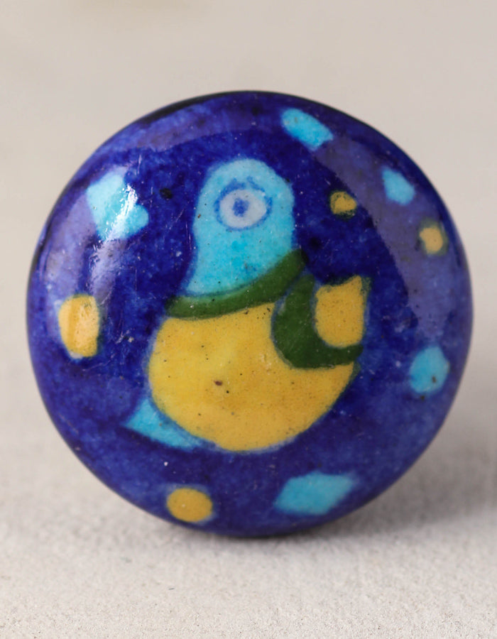 Blue Ceramic Blue Pottery Knob With Hand Painted Bird