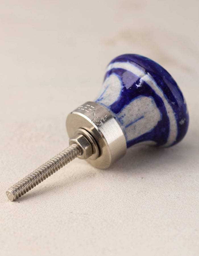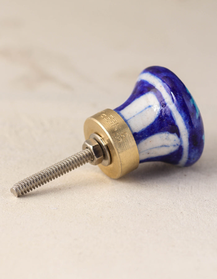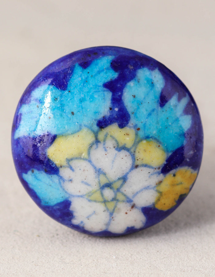 Blue Ceramic Blue Pottery Knob With Multicolor Floral Print