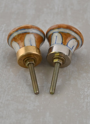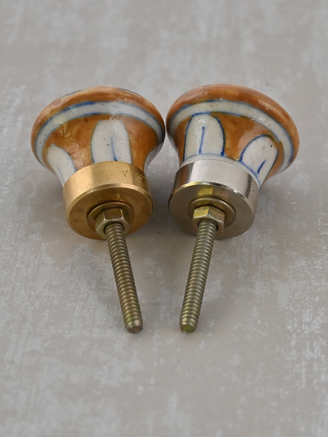 Blue Design on Brown Color Blue Pottery Drawer Knob