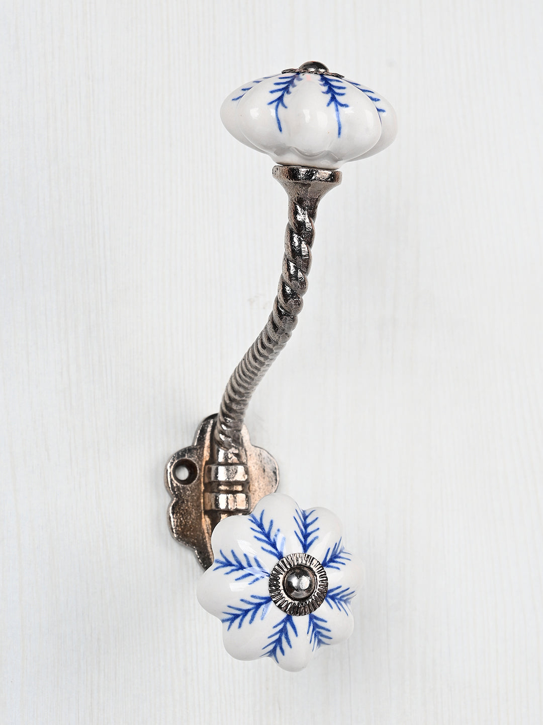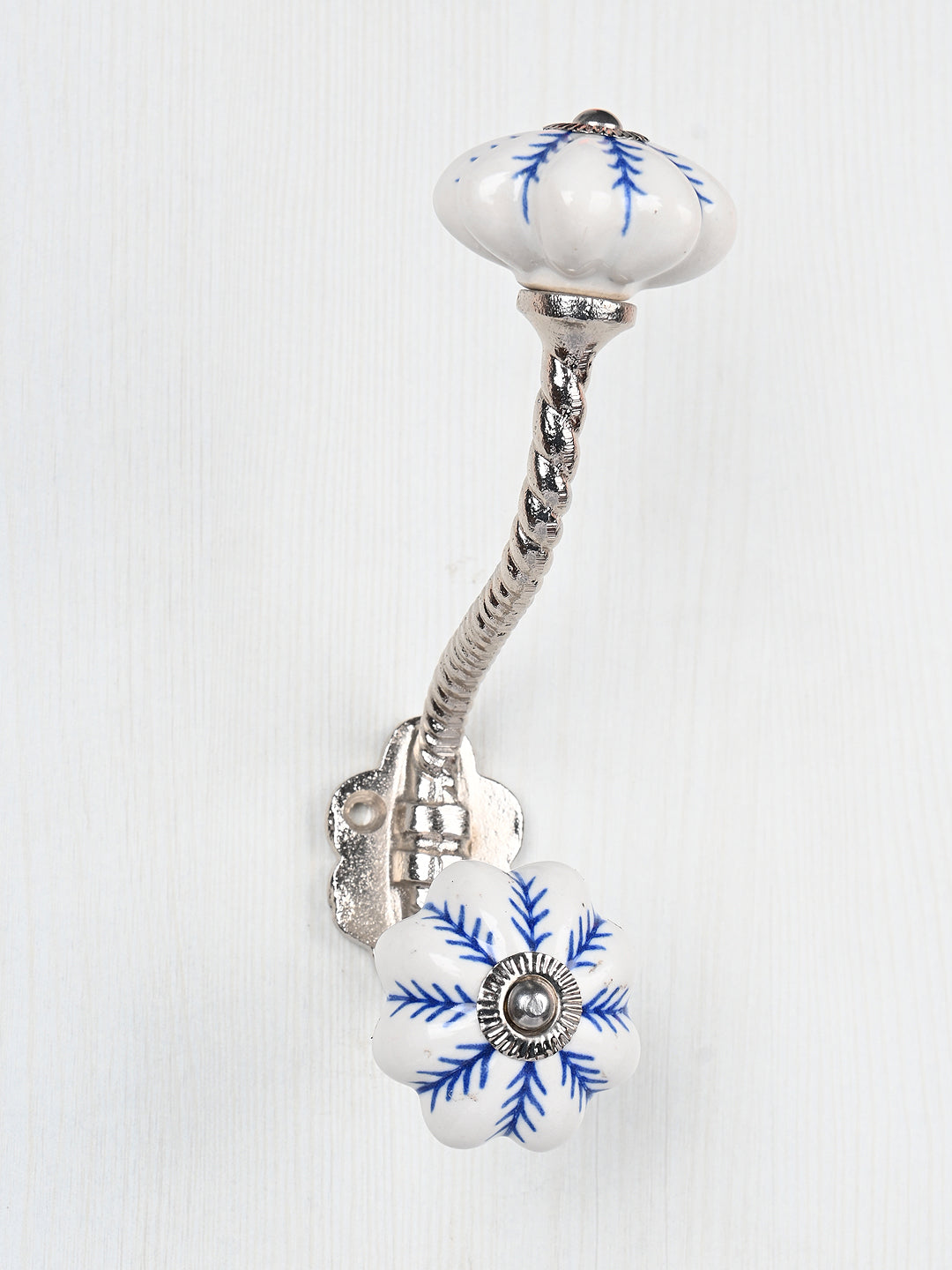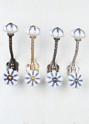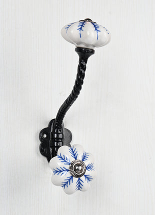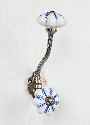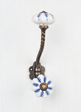 Blue design On White Base Ceramic Knob With Metal Wall Hanger