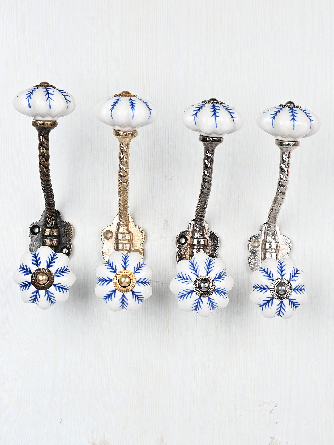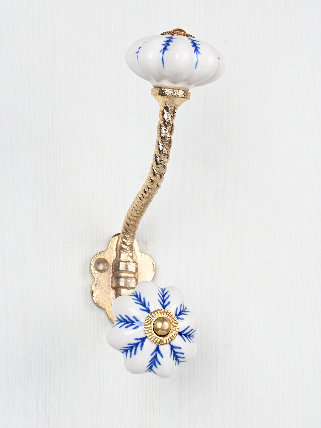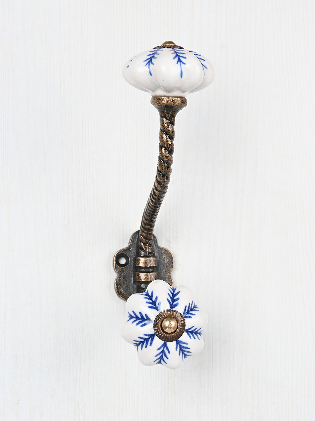 Blue design On White Base Ceramic Knob With Metal Wall Hanger