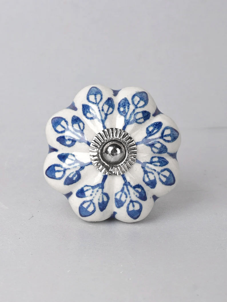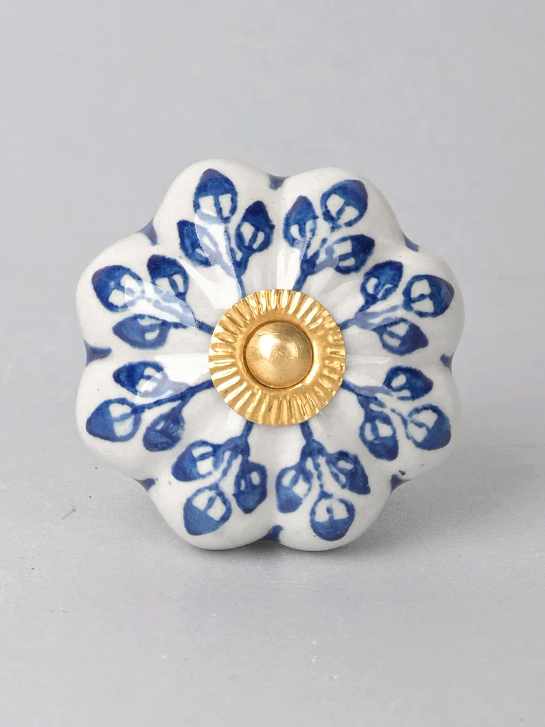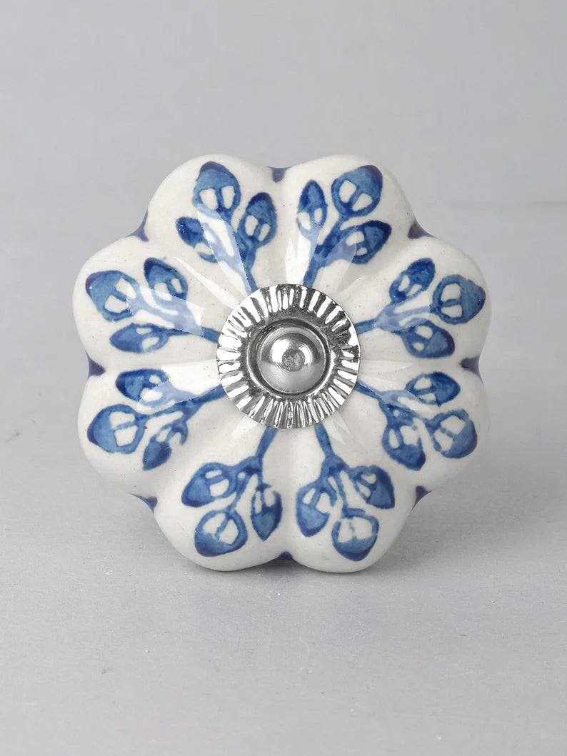 Blue Flower design On White Base Ceramic Door Knob is beautifully hand painted knob that revitalizes the entire look of your room instantly. The flowered knob doesn't fail to add the natural hint to your home with the personal touch.