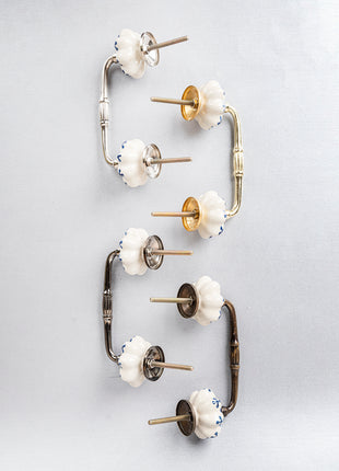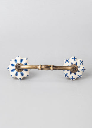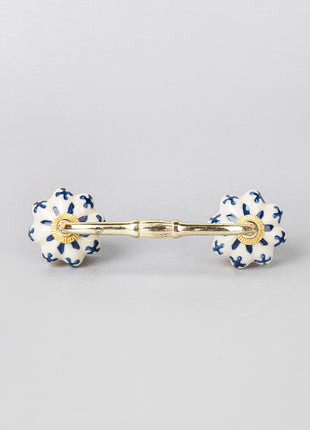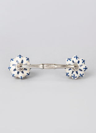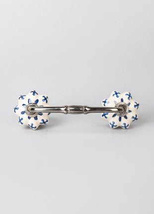 Blue Flower design On White Base Ceramic Door Pull