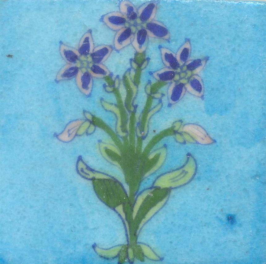 Blue Flowers and Green leaf with Turquoise Base Tile