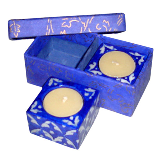 Blue and white hand painted pottery decorative candle holders . Unique, hand painted candle holders for your kitchen, dining room, living room, bedroom and bathroom. Each set contains a gift box with two candle holders and two tea lights. Delivery time is normally 7 to 10 business days.