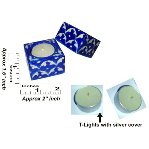 Blue Pottery Candle Holder 2 Piece Set (Design 02)
