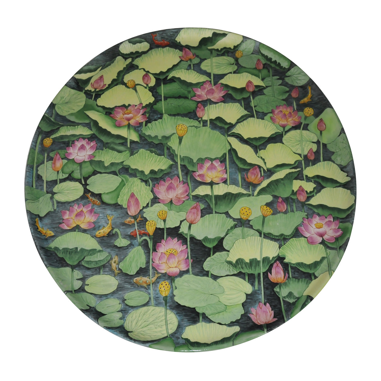 Blue Pottery Lotus Design Collectible Plate 40 inches One of a Kind Piece, Art and Collectibles, Limca Book of Records