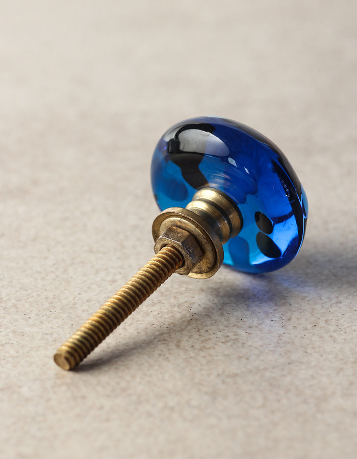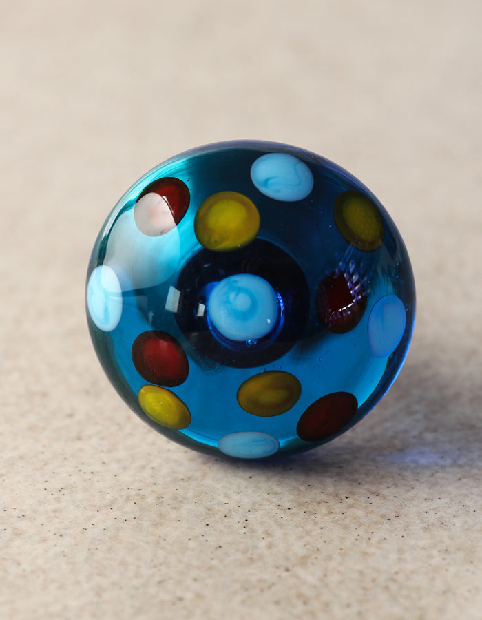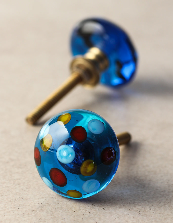 Blue Round Dresser Cabinet Knob With Multicolor Polka-Dots