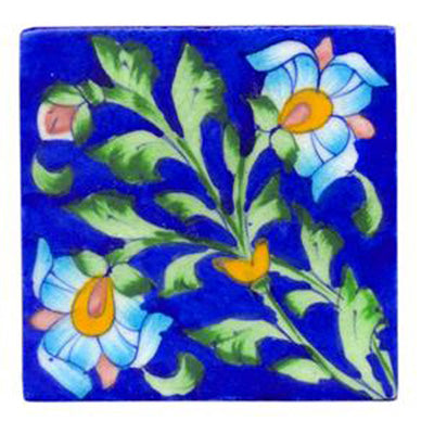 Blue Tile with Blue, Turquoise, Yellow and Pink Flowers and Green Leaves (4x4-bpt01)