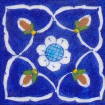 Blue tile with white,sky blue and brown pattern (3x3-bpt16)