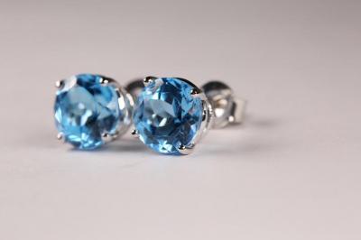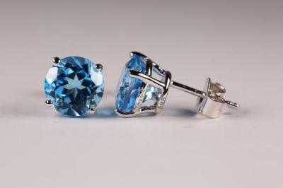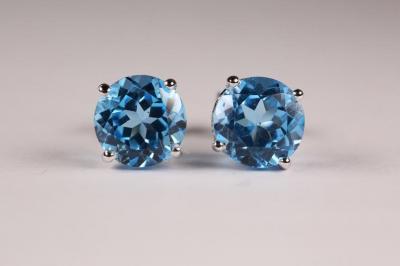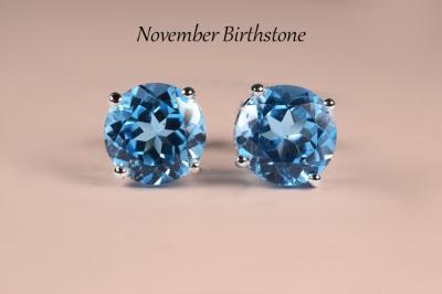 Blue Topaz Earrings, 14K White Gold, Blue Earrings, Genuine Swiss Blue Topaz, 14K Stud Earrings, November Birthstone, Gift for her