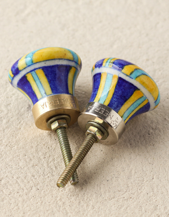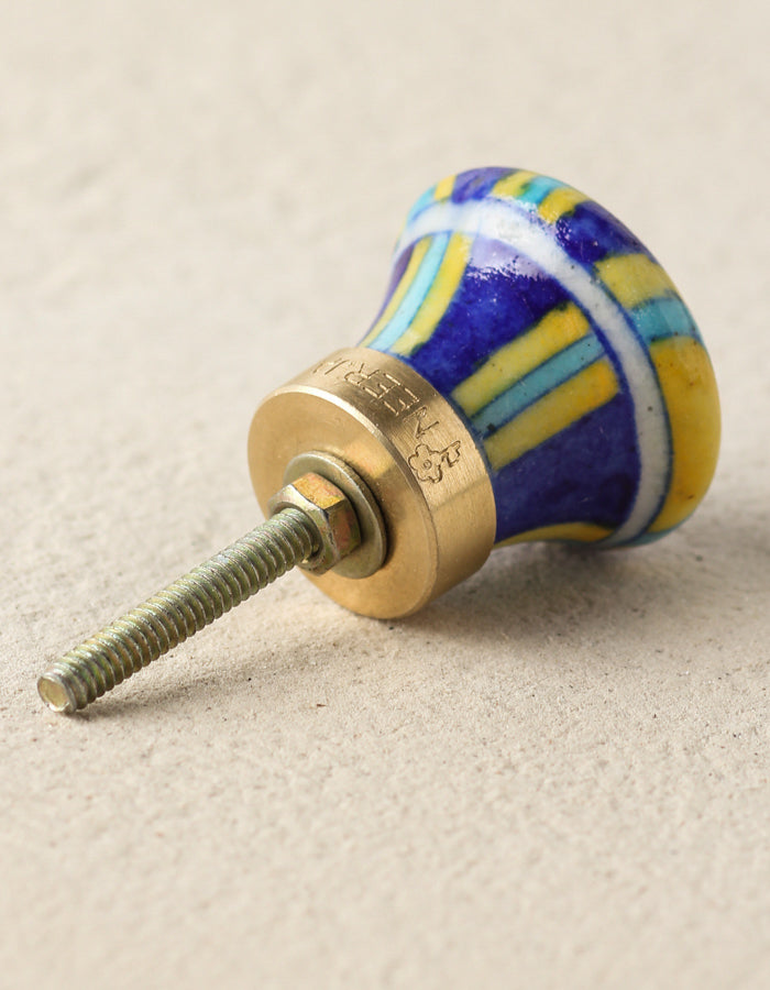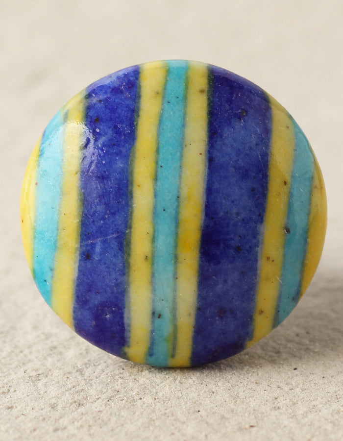 Blue, Turquoise And Yellow Stripes Ceramic Blue Pottery Door Knob