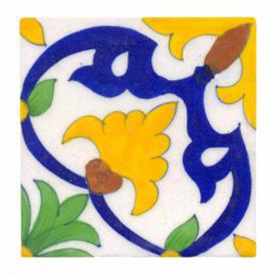 Blue, yellow & green flowers on white tile (4x4-bpt21)