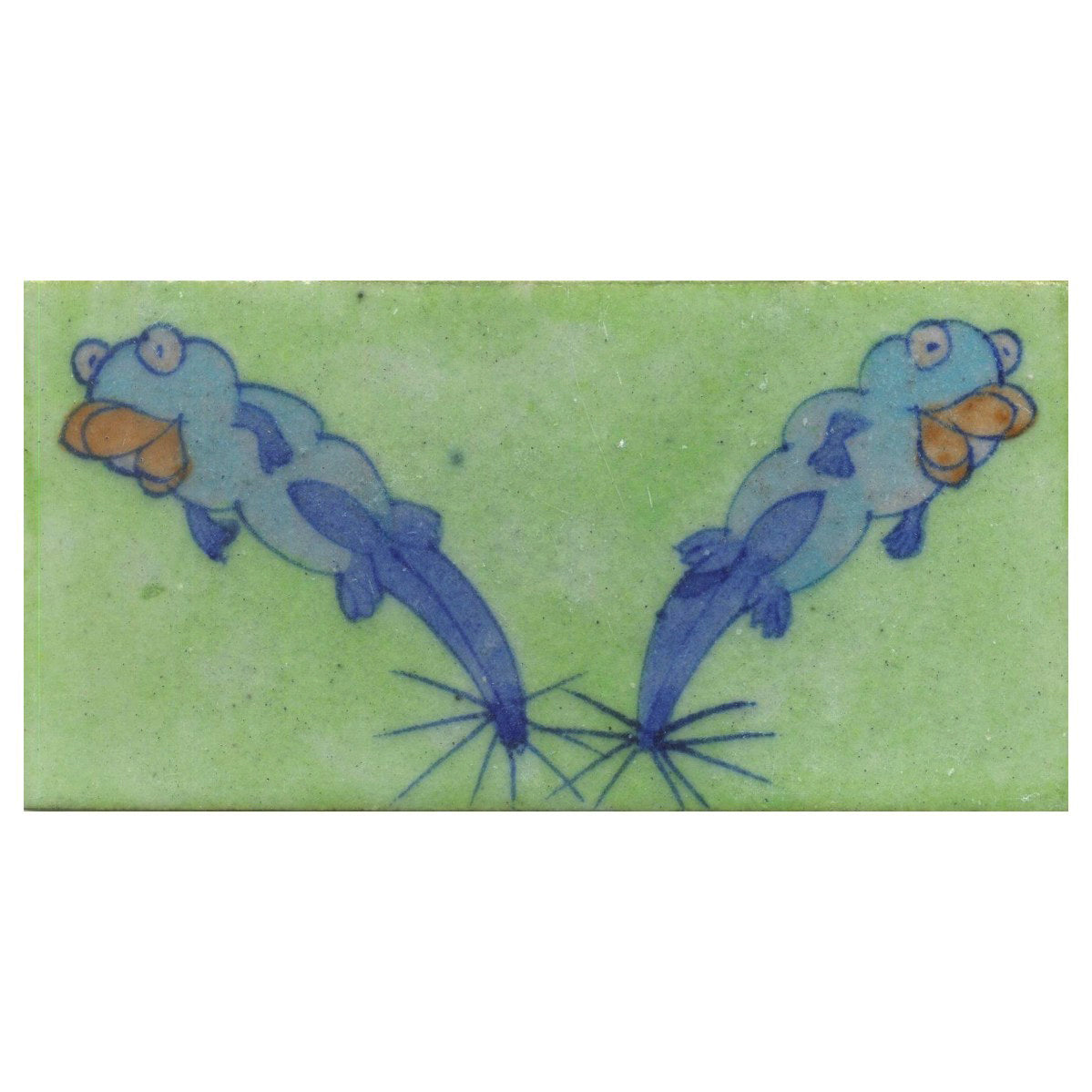 Blue,Light Blue and Brown Two Cartoon Design with Lime Green Base Tile
