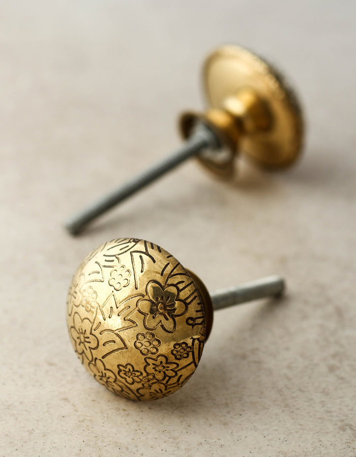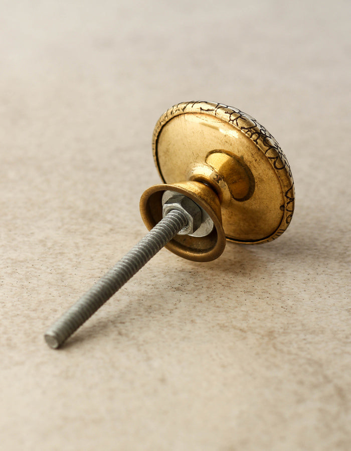 Brass Metal Knob will add color and style to your kitchen and bathroom cabinets! These unique, hand made cabinet knobs are 1.5" in diameter and includes screws for installation. Delivery time is normally 5 to 7 business days.  Minimum order of three knobs - mix and match.