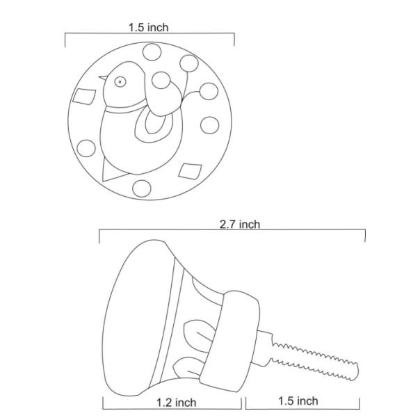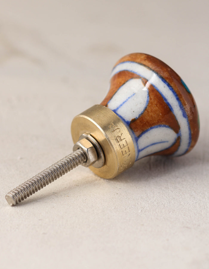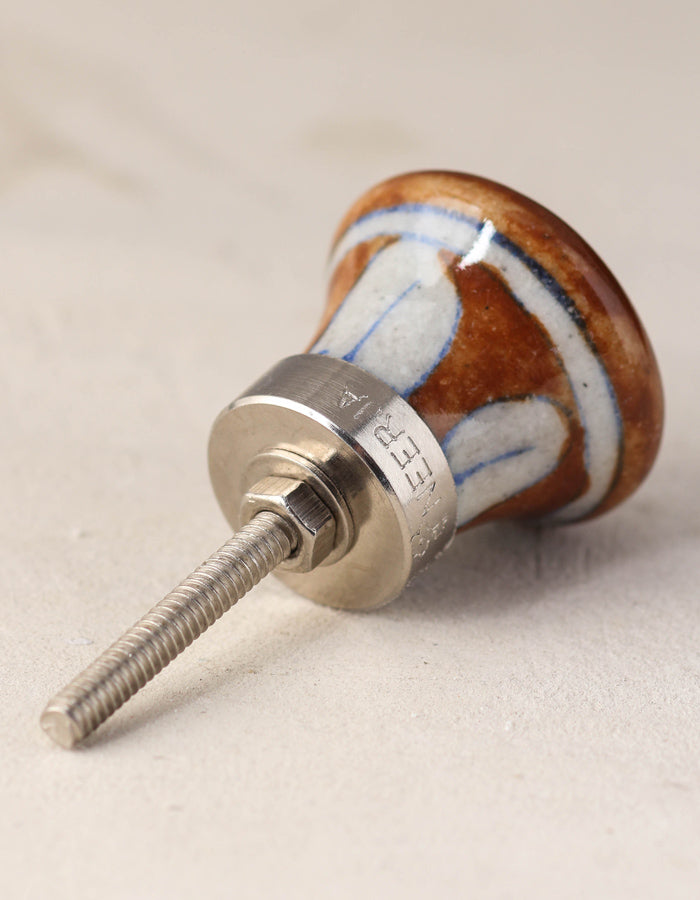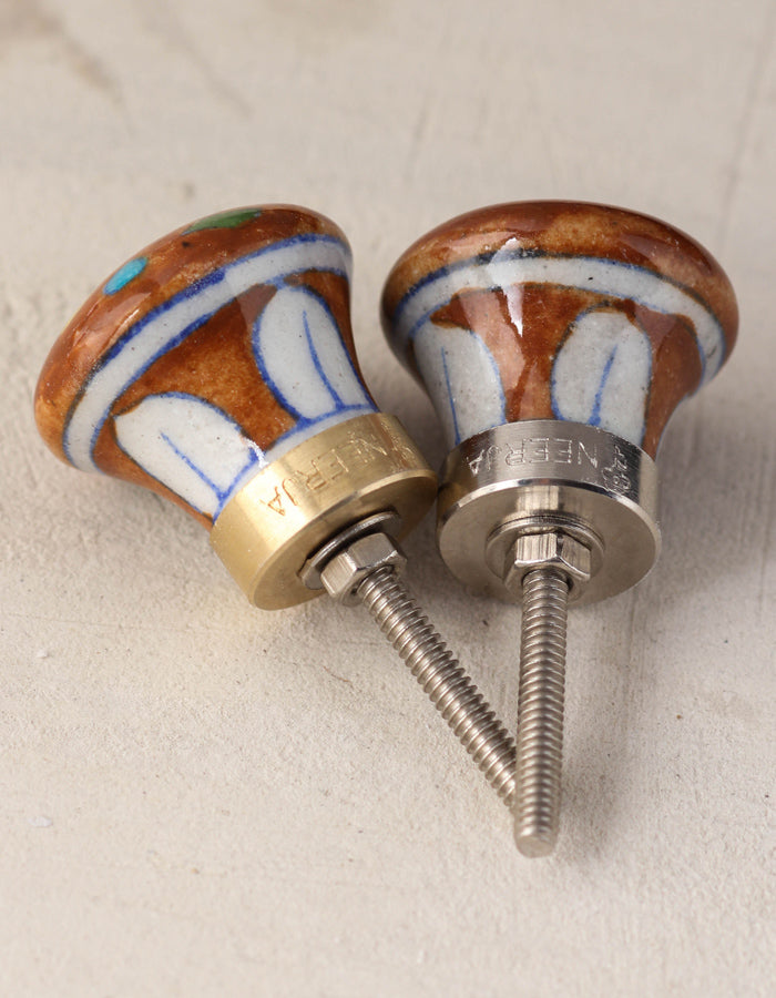 Brown Ceramic Blue Pottery Door Knob With Hand Painted Bird