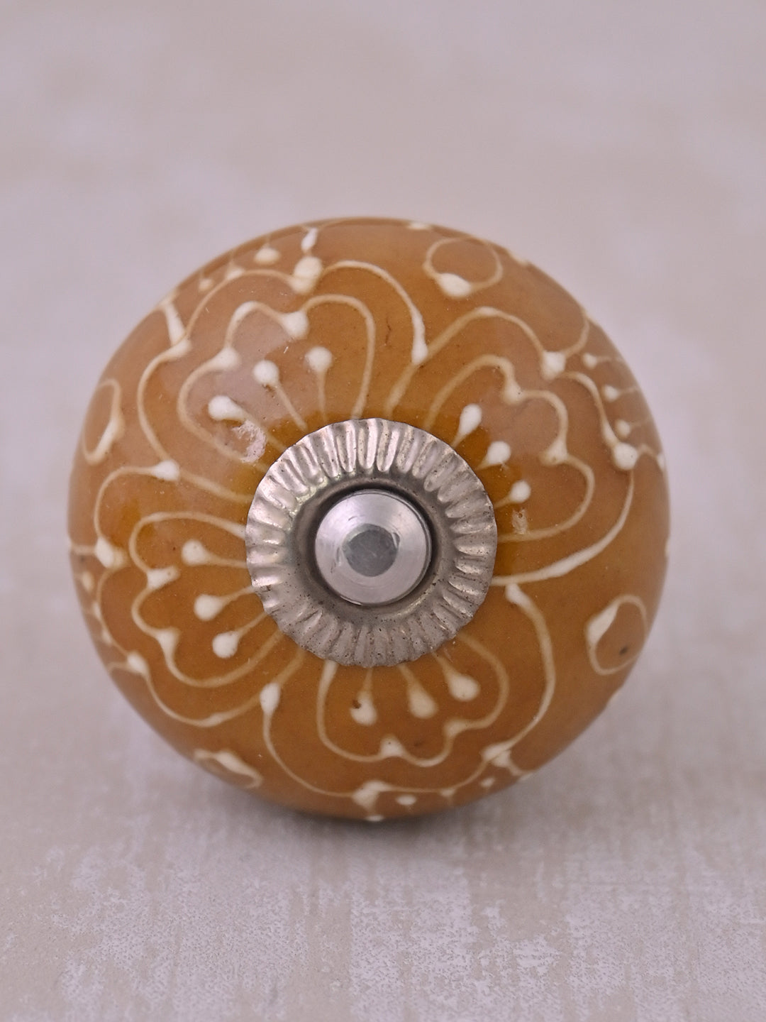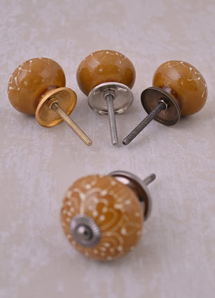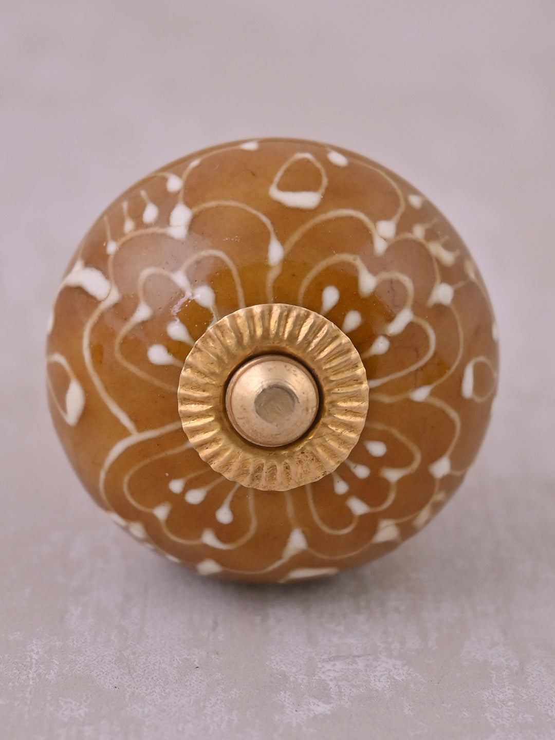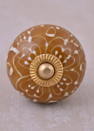 Brown Ceramic Drawer Knob With Embossed Floral Design