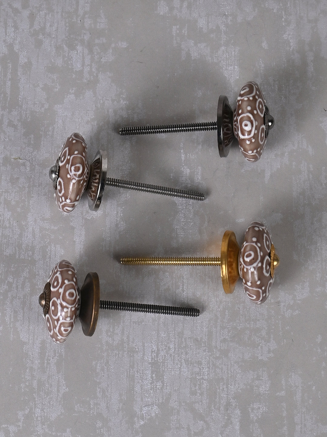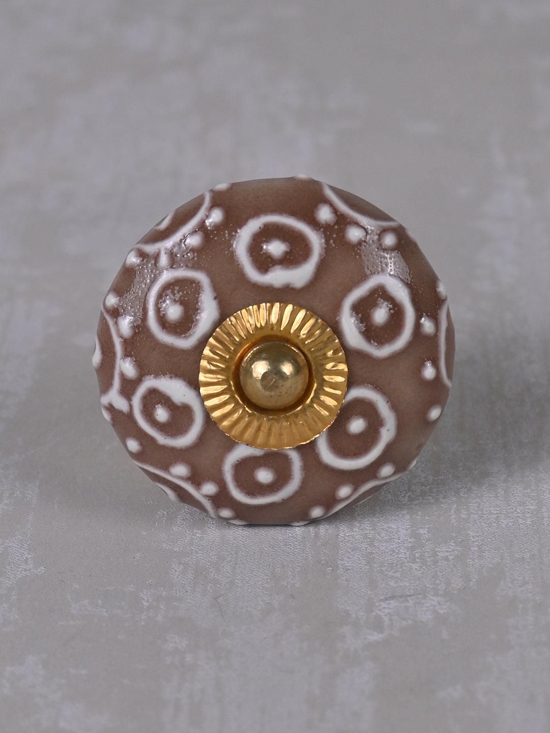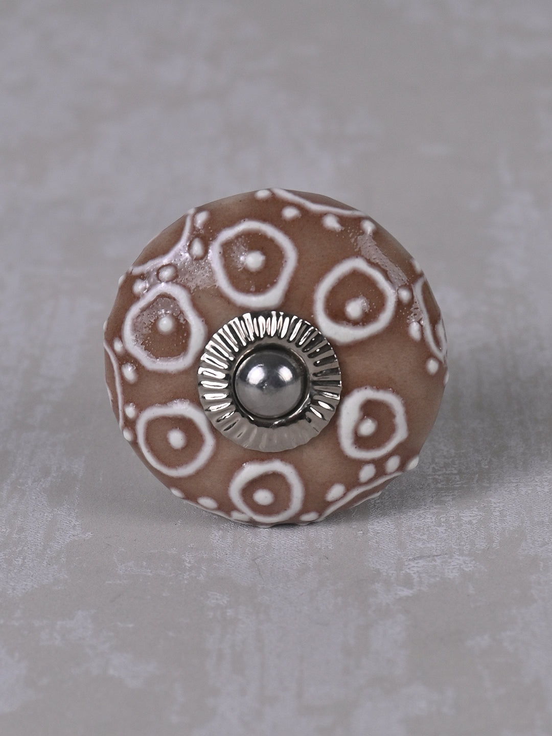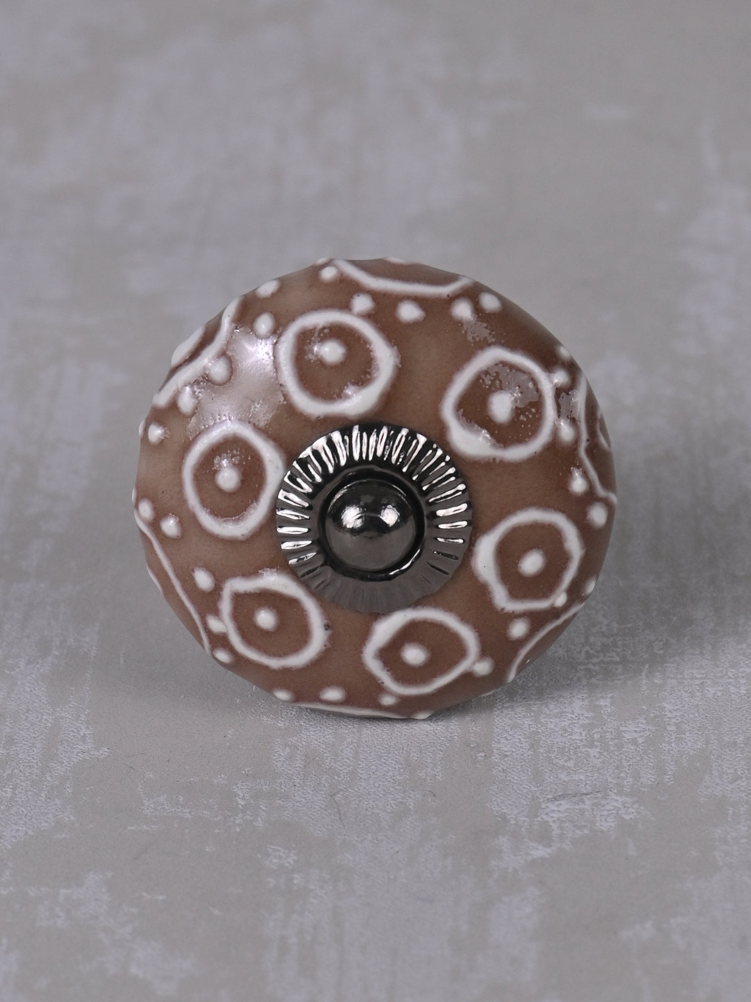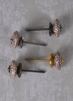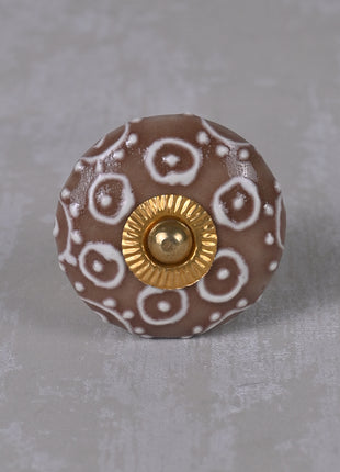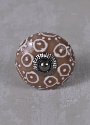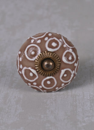 Brown Ceramic Dresser Knob With White Embossed Design