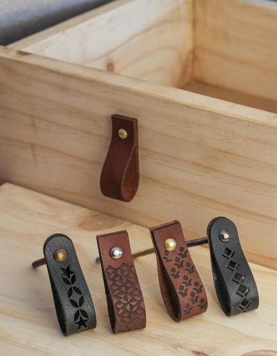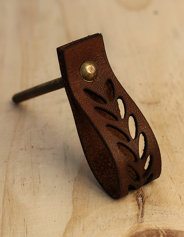 Brown Leafy Design Leather knobs