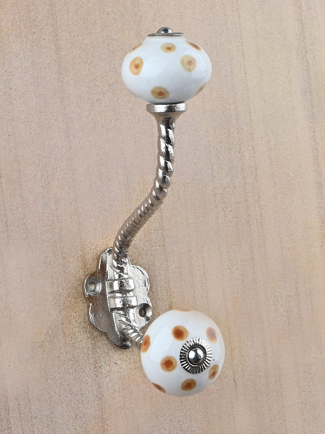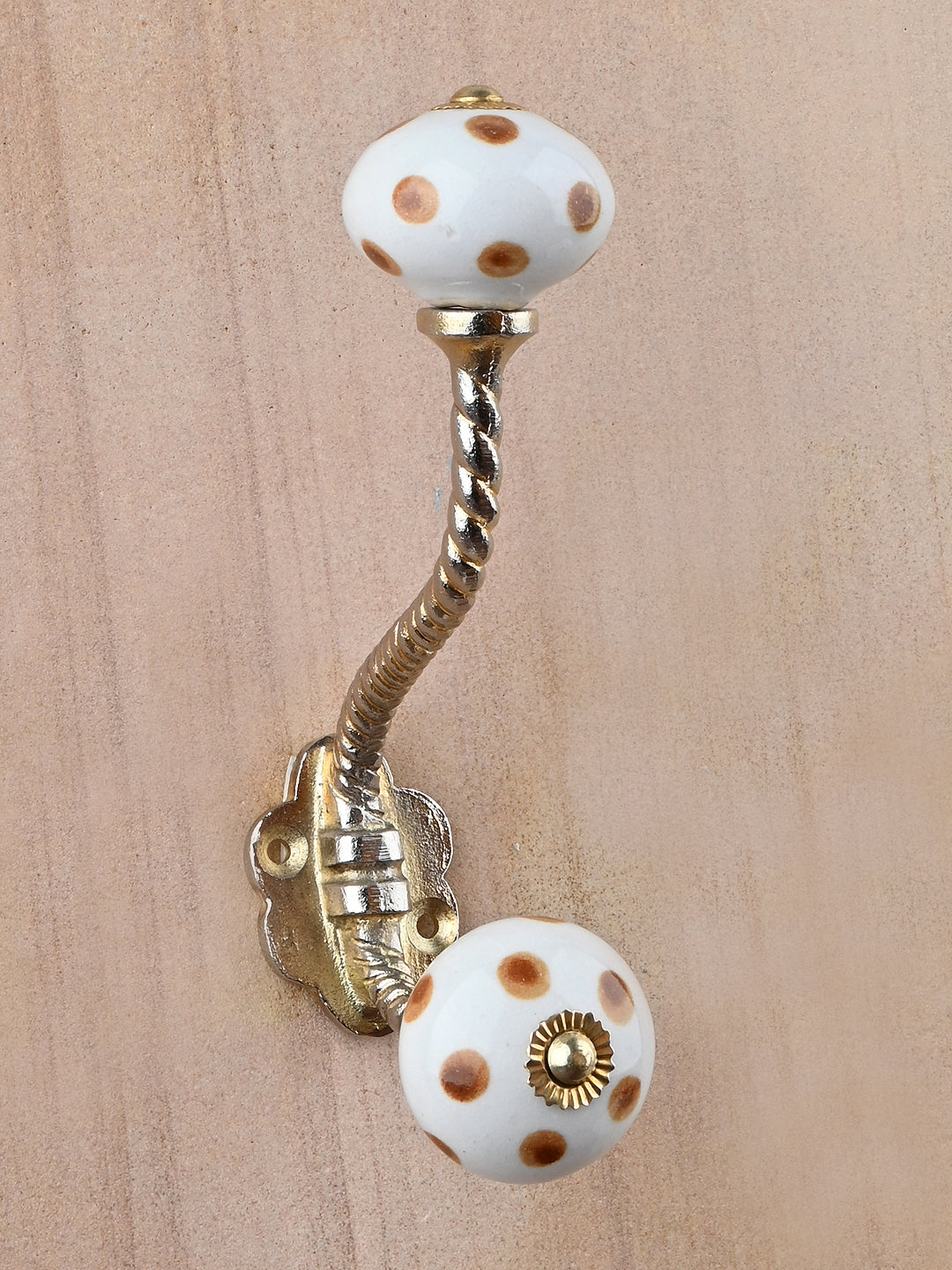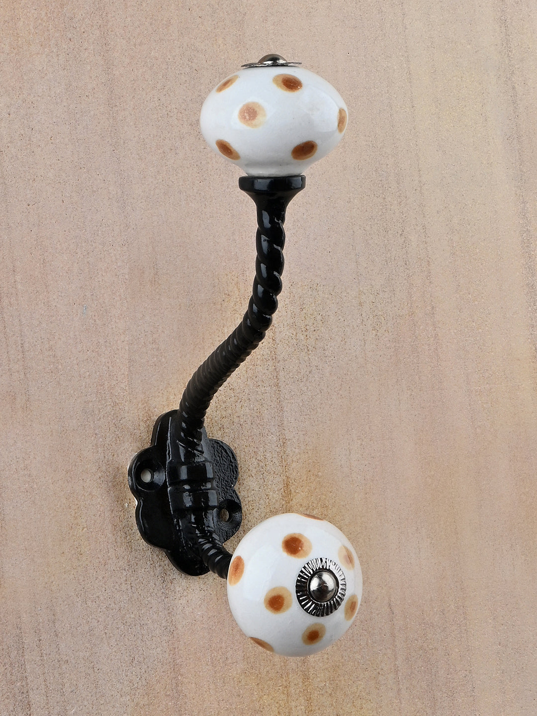 Brown Polka Dots Cabinet Knob With Metal Wall Hanger
