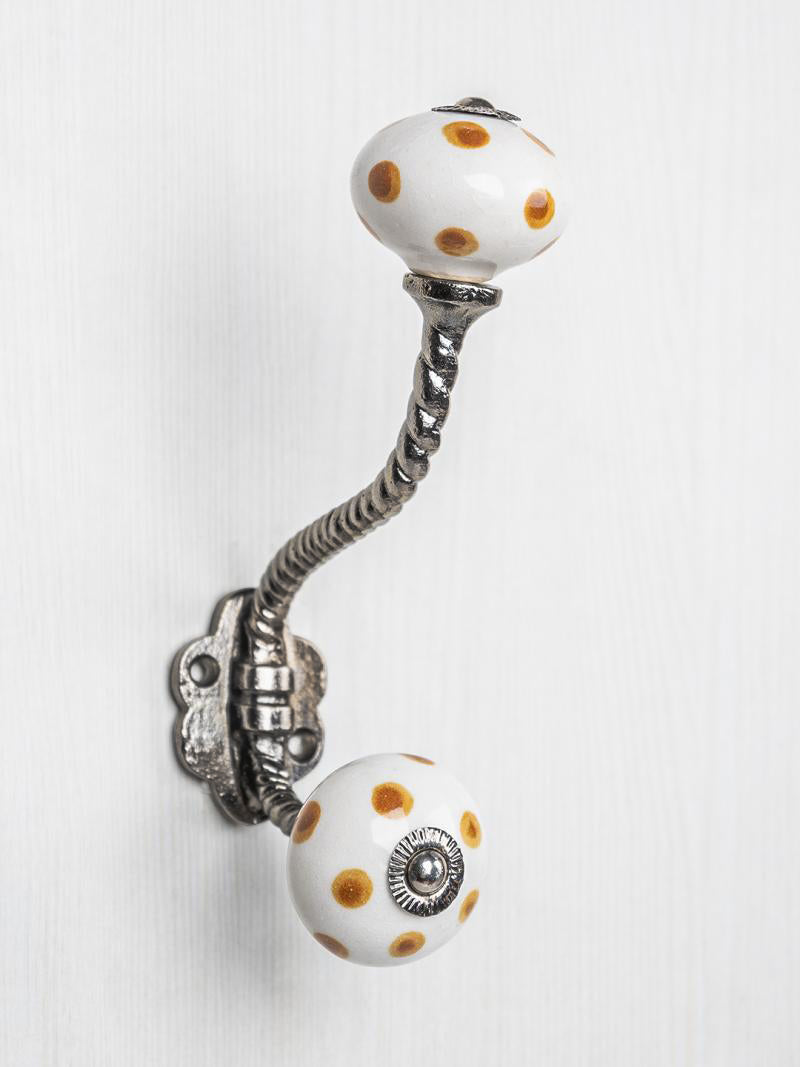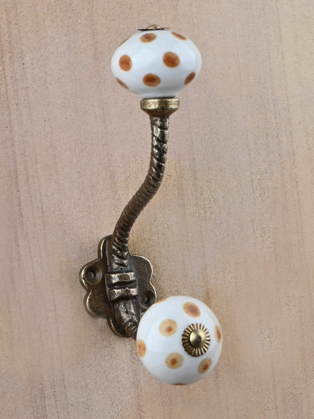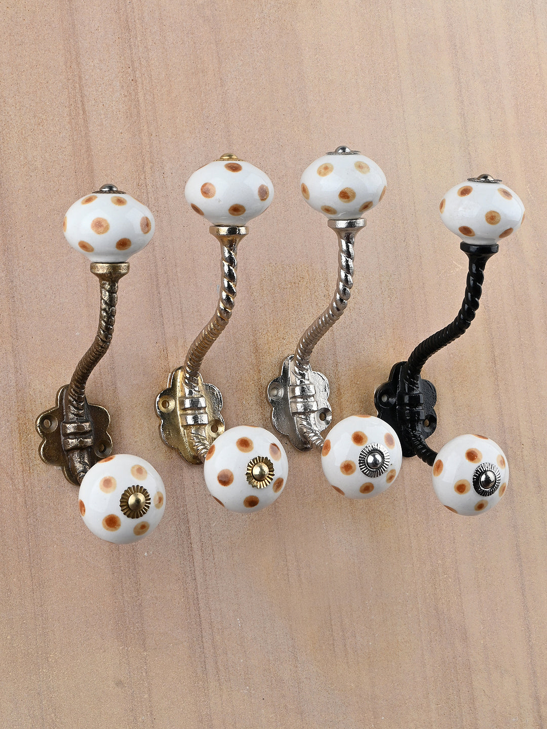 Brown Polka Dots Cabinet Knob With Metal Wall Hanger
