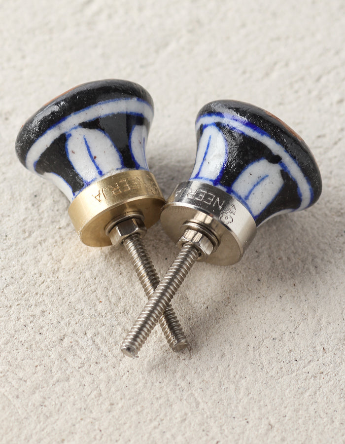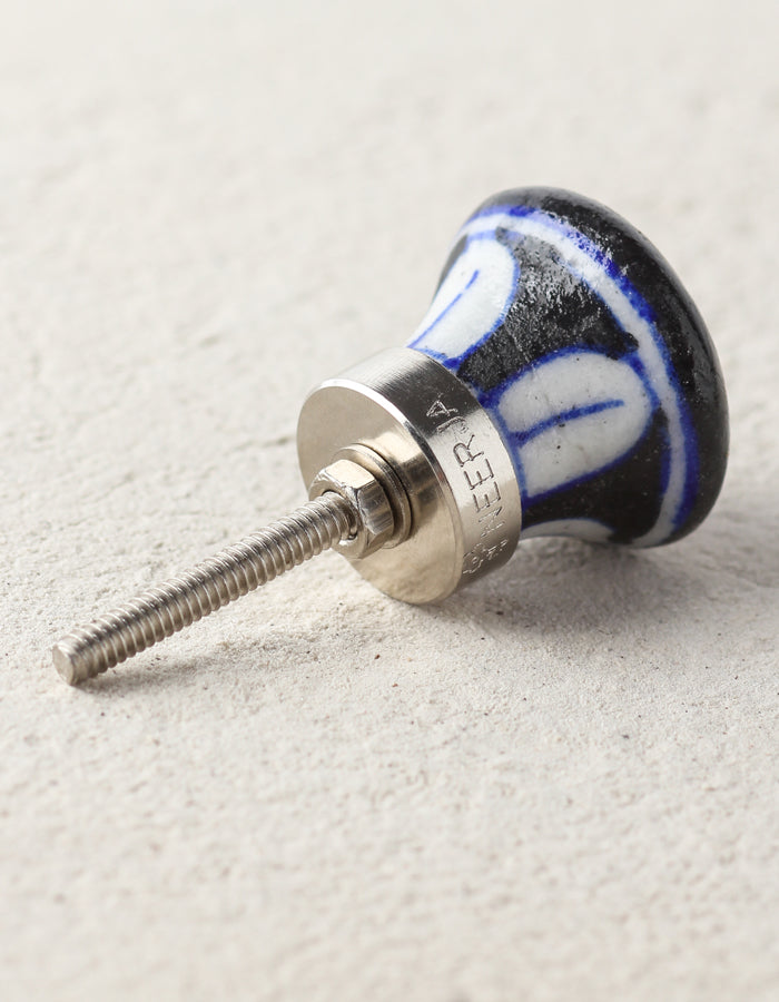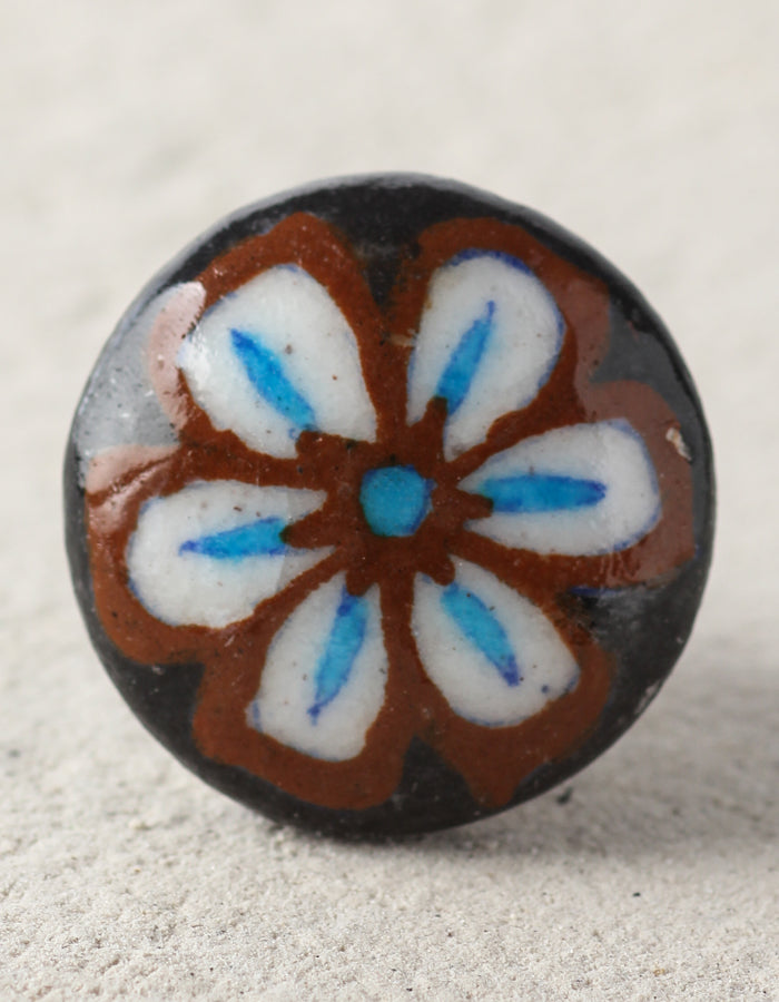 White Flower On Brown Ceramic Blue Pottery Kitchen Cabinet Knob