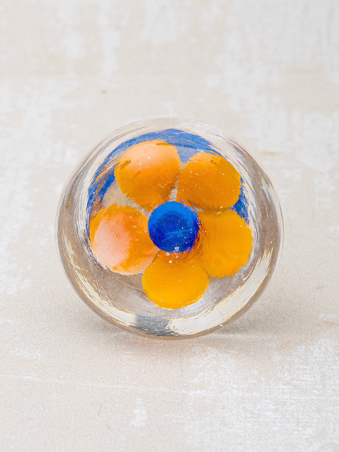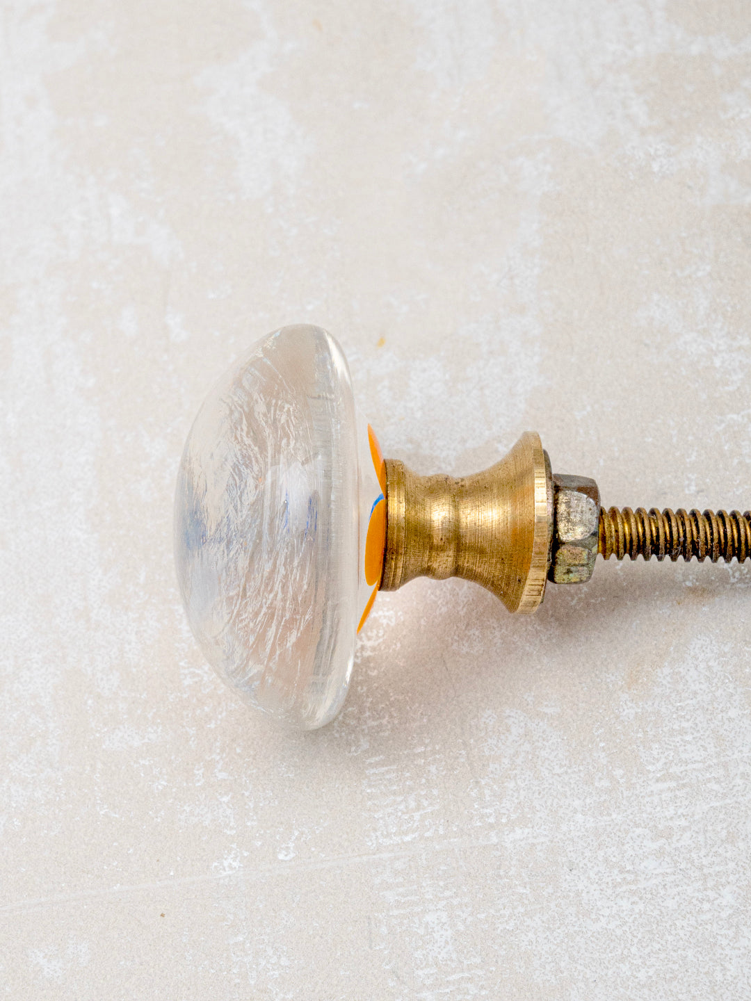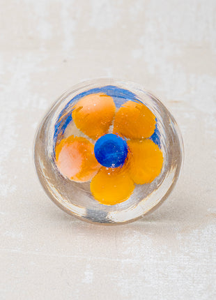 Clear Glass Dresser Cabinet Knob With Blue And Orange Flower