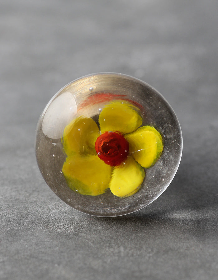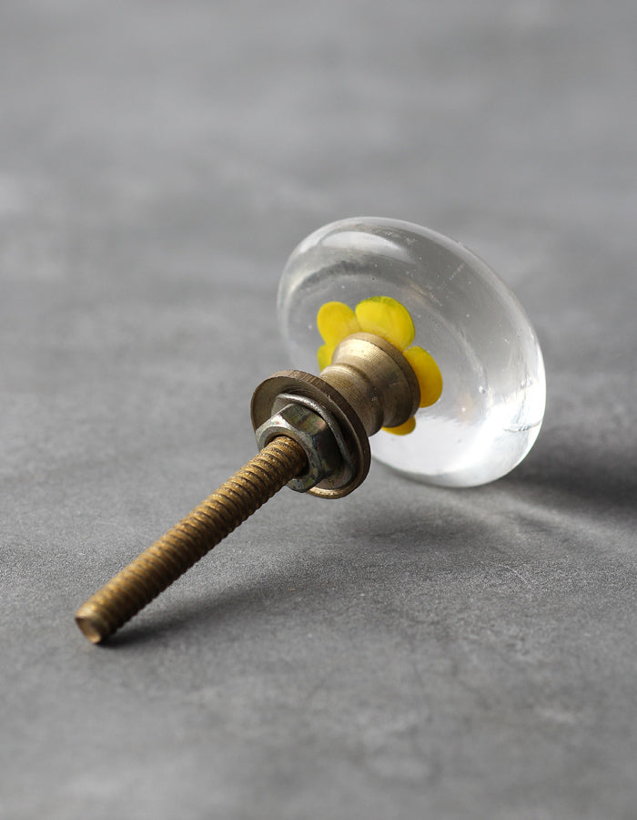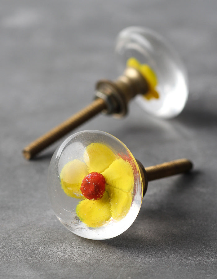 Clear Glass Kitchen Cabinet Knob With Red And Yellow Flower