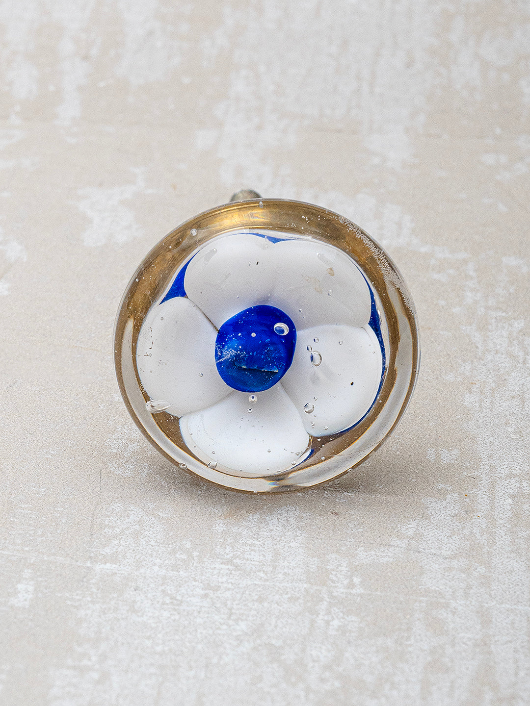 Clear Glass Kitchen Cabinet Knob With White And Blue Flower