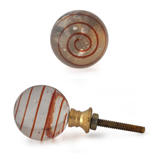 Clear Round Glass Dresser Cabinet Knob With Brown Spiral