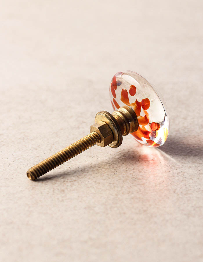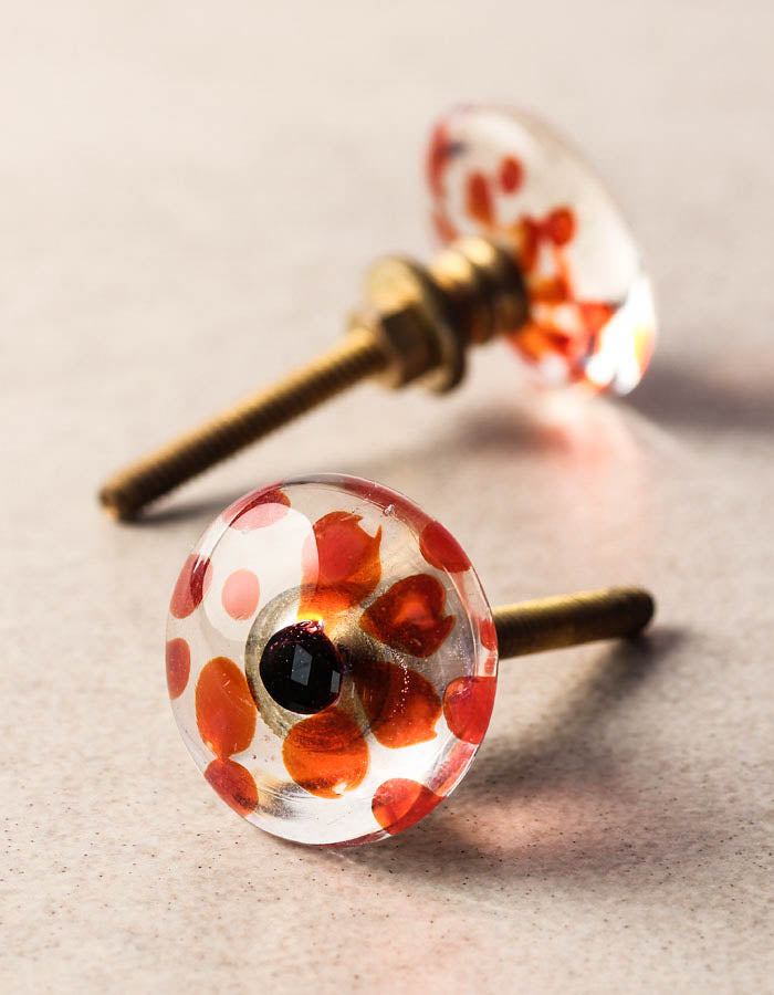 Clear Transparent Round Shaped Kitchen Cabinet Knob With Red Design