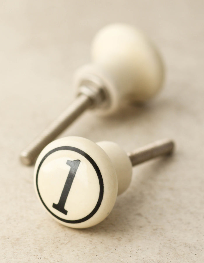 Cream Color Number 1 Handmade Ceramic Drawer Knob