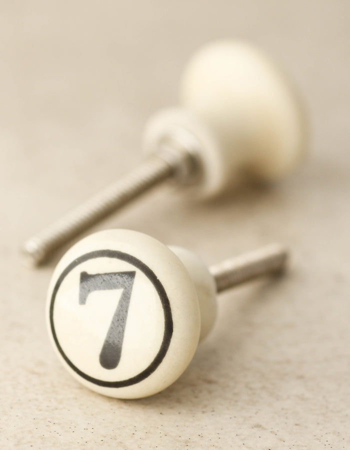 Cream Color Number 7 Handmade Ceramic Drawer Knob