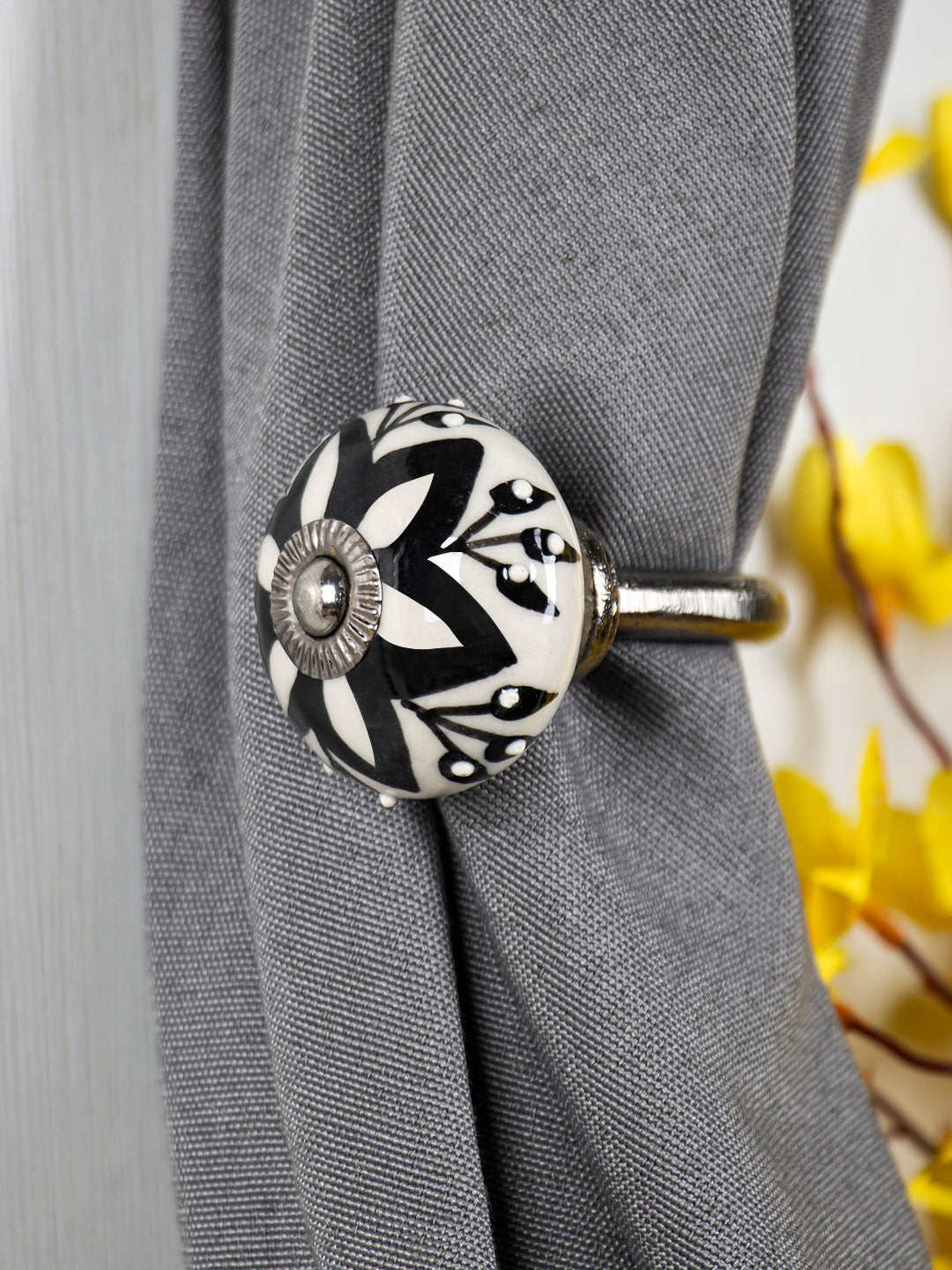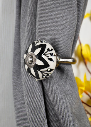 Curtain Tie Backs Hook Decorative Wall Hook-Black Design (Set of Two)