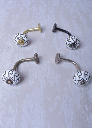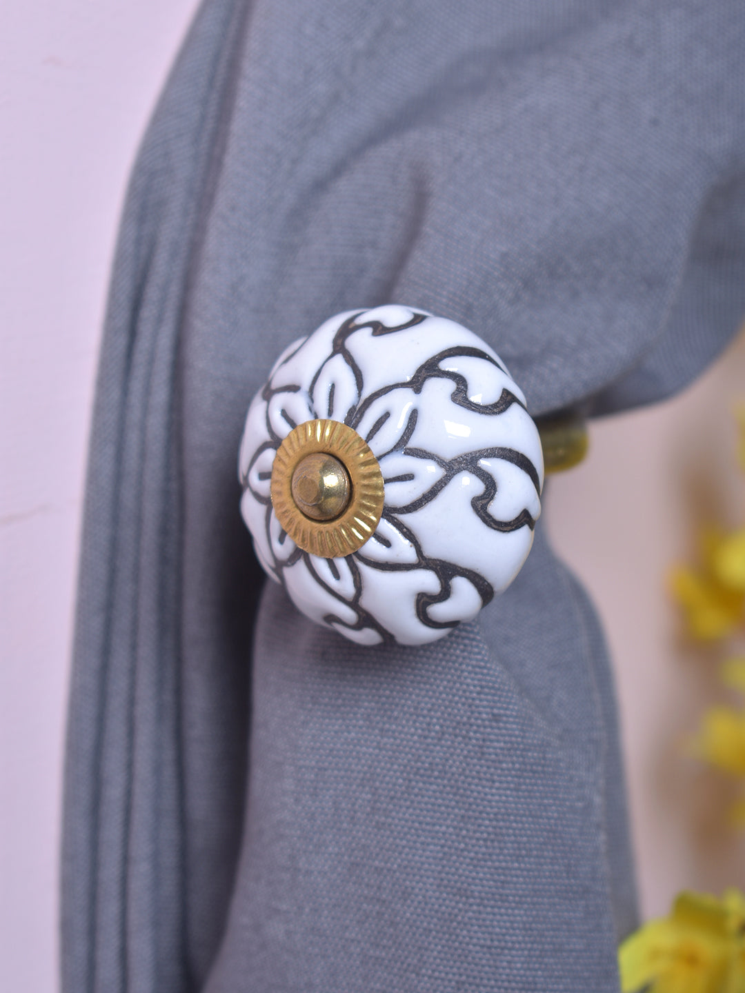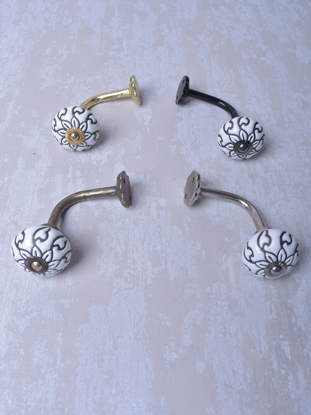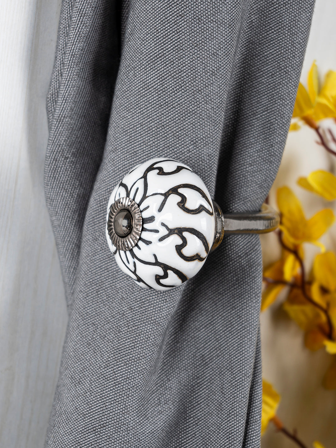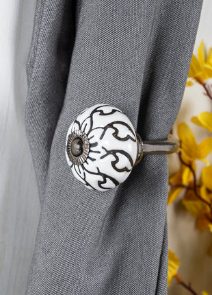 Curtain Tie Backs Hook Decorative Wall Hook- Black, White (Set of Two)