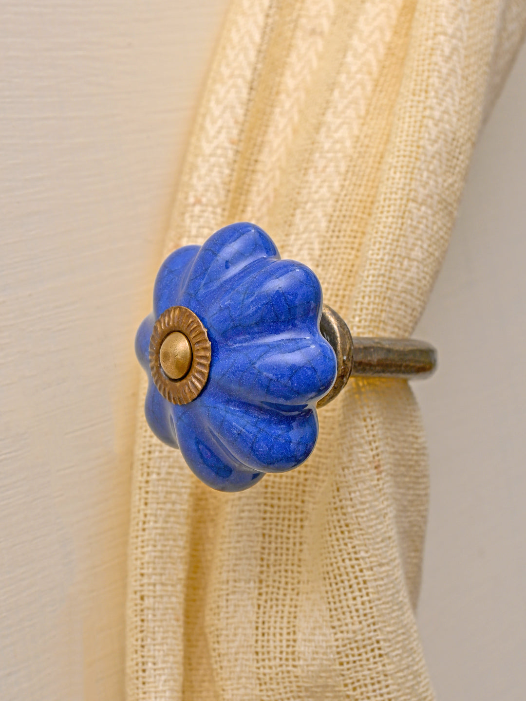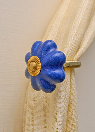 Curtain Tie Backs Hook Decorative Wall Hook- Blue Crackle (Set of Two)