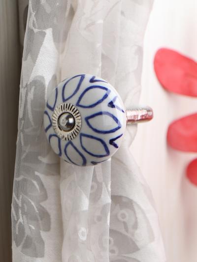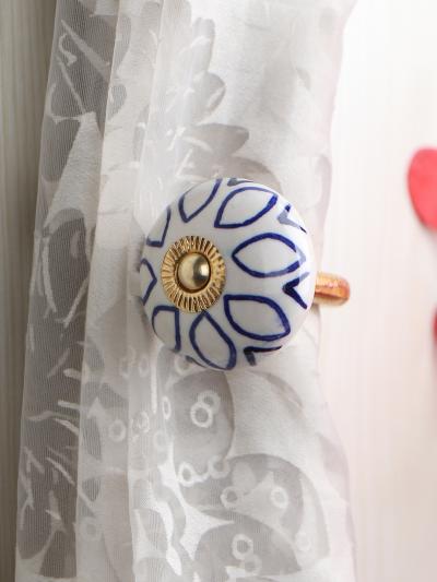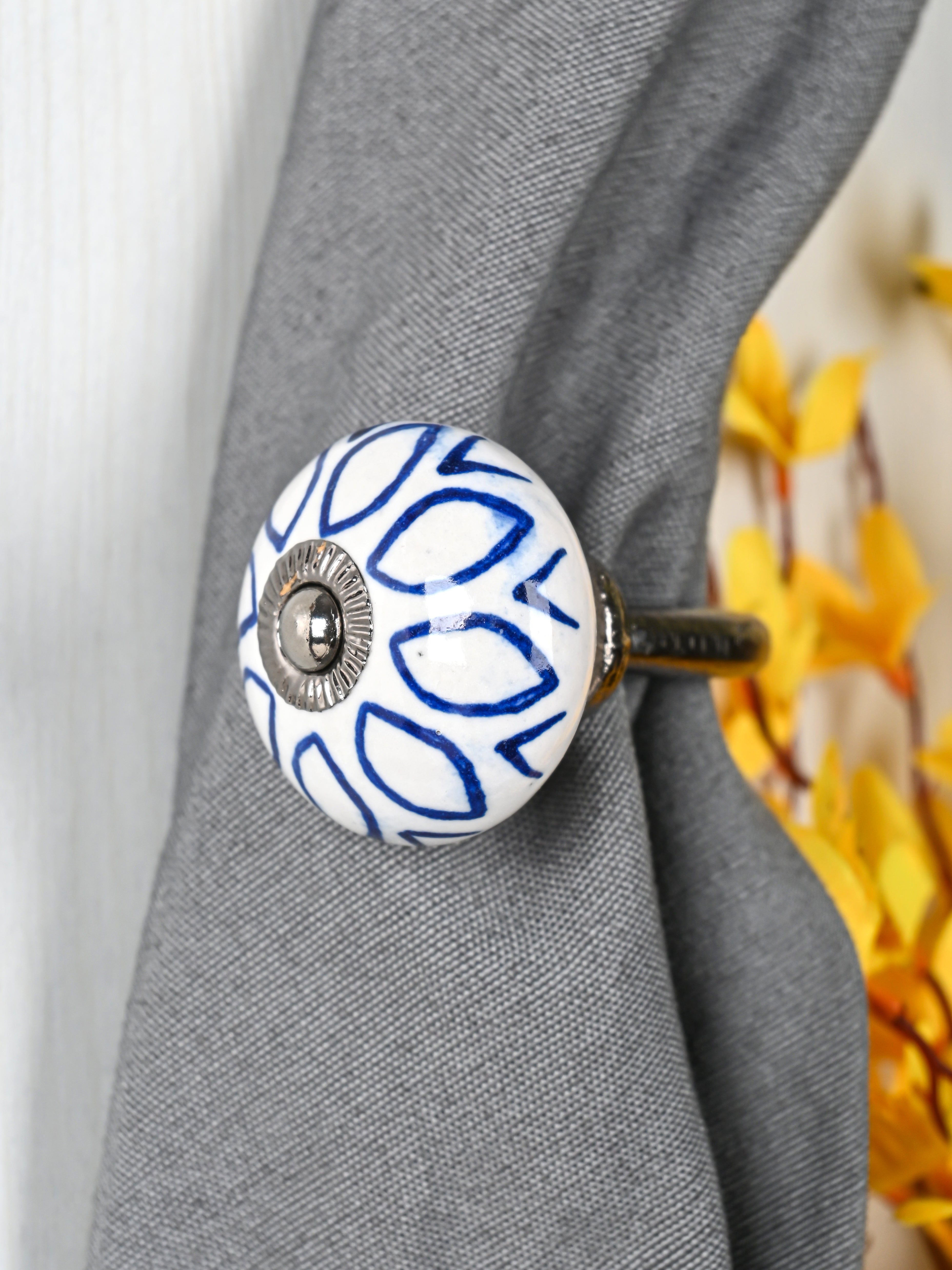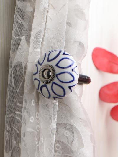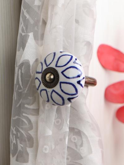 Curtain Tie Backs Hook Decorative Wall Hook-Blue Flower (Set of Two)
