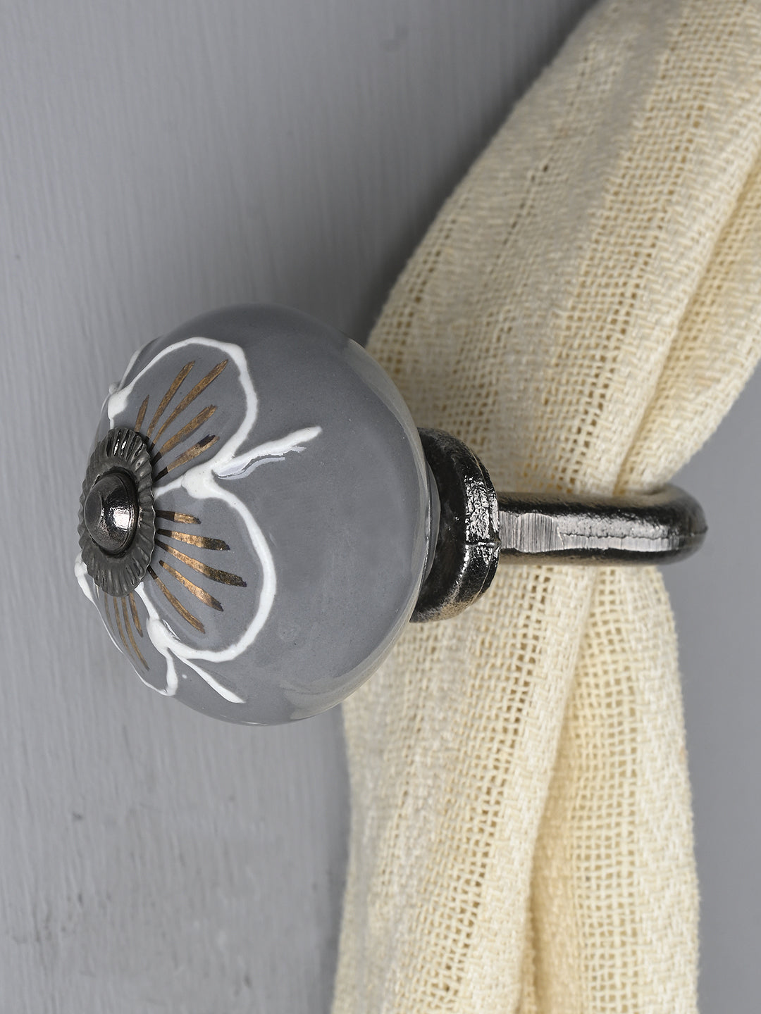 Curtain Tie Backs Hook Decorative Wall Hook- Gray (Set of Two)