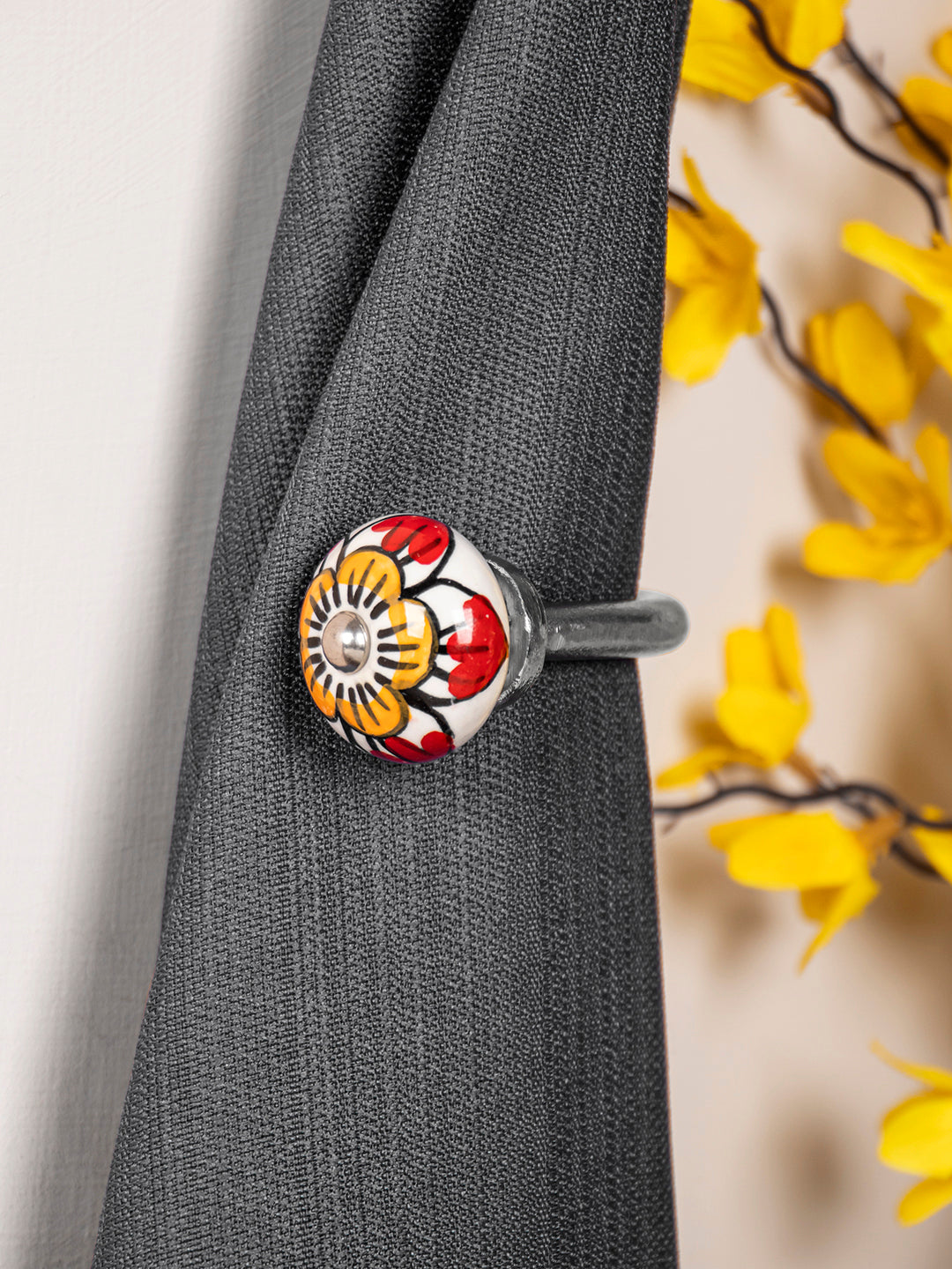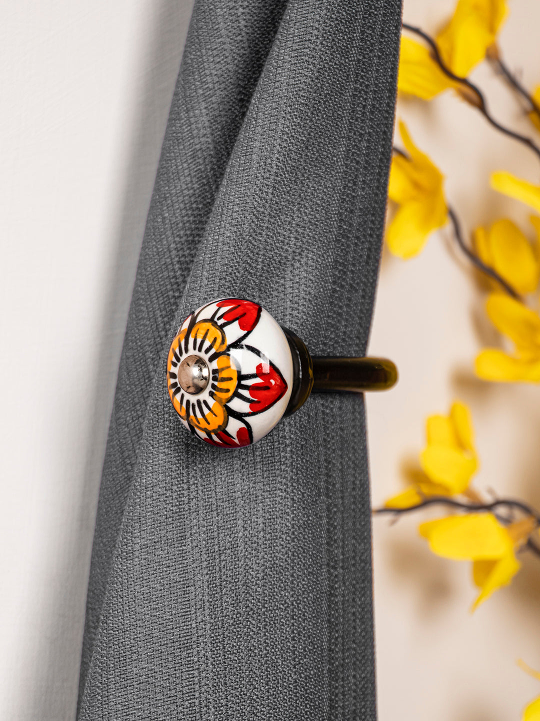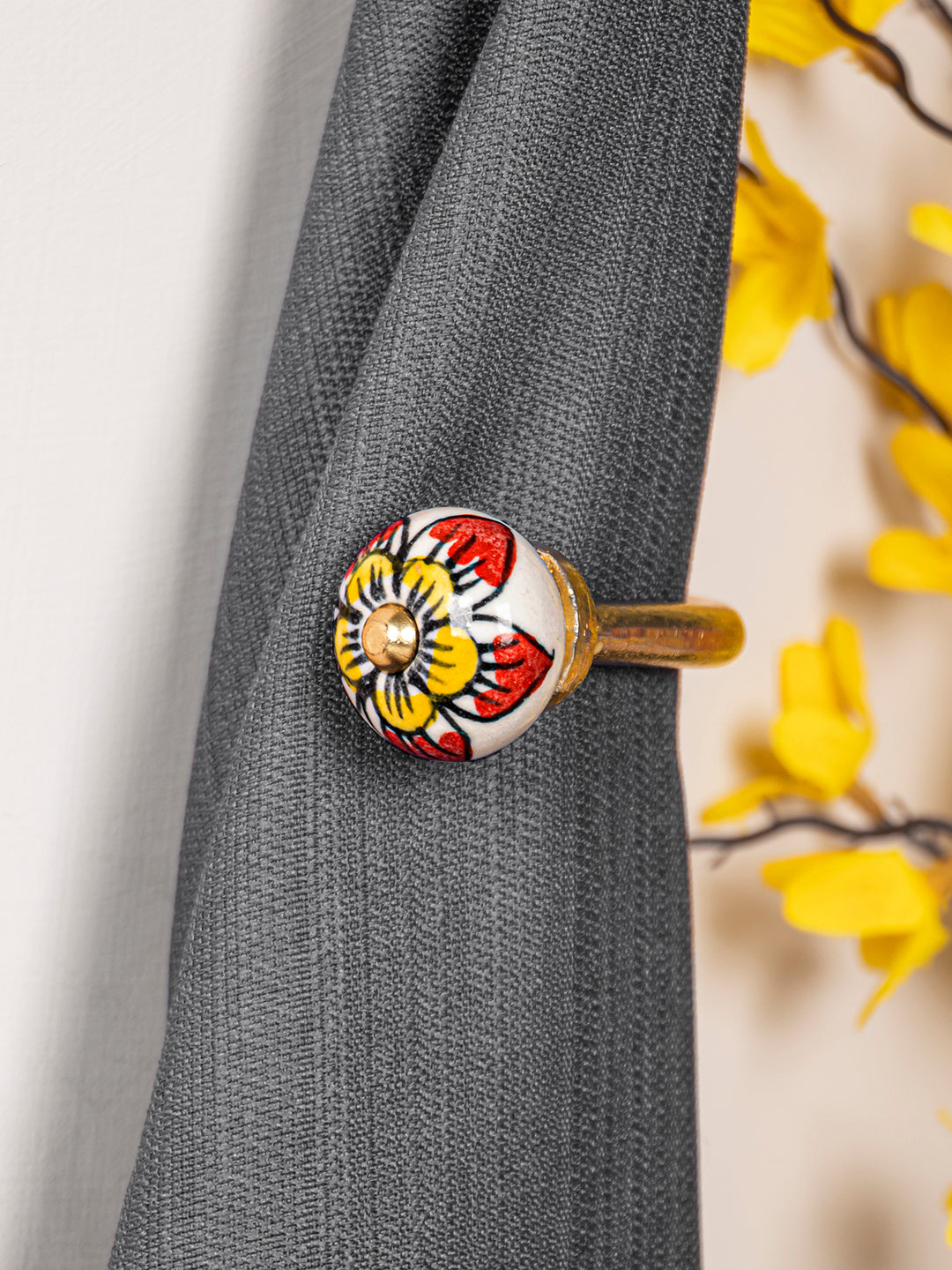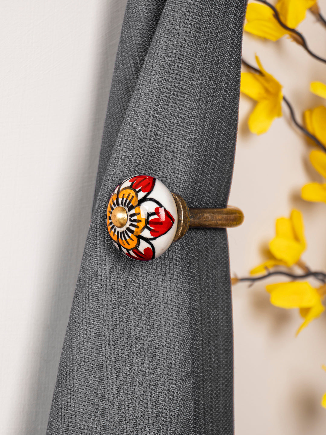Curtain Tie Backs Hook Decorative Wall Hook- Red Flower (Set of Two)