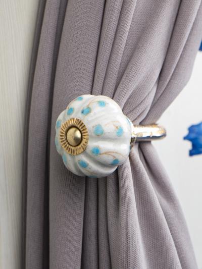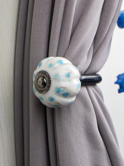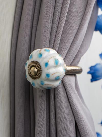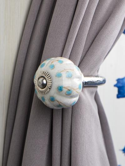 Curtain Tie Backs Hook Decorative Wall Hook-Turquoise Dots (Set of Two)