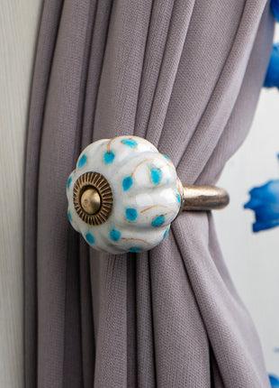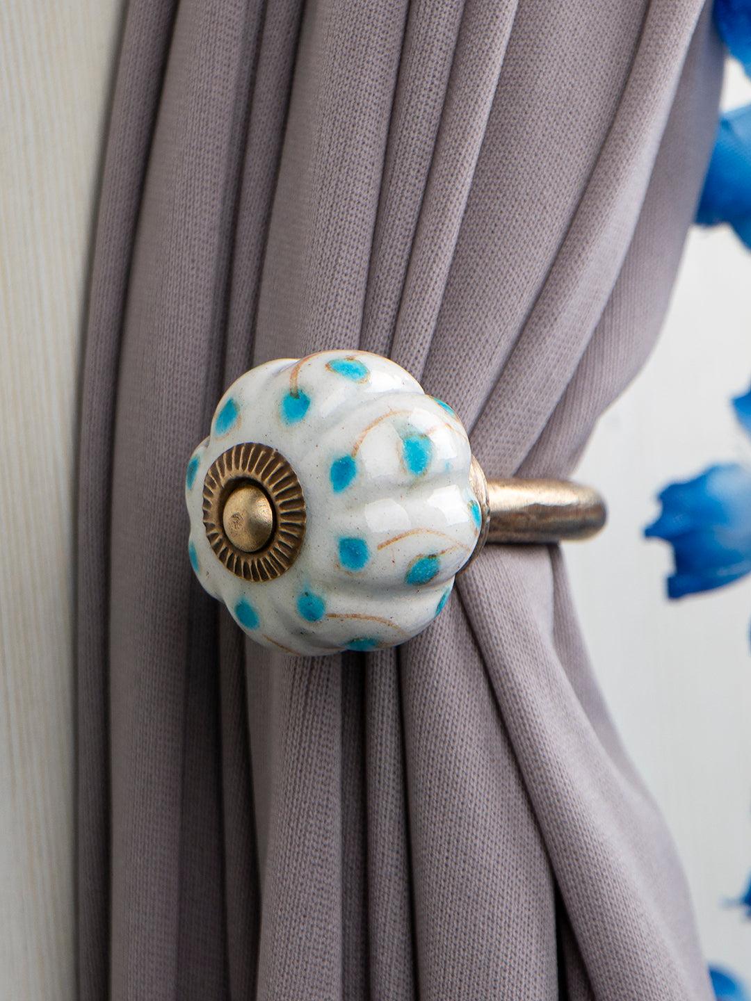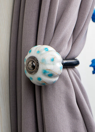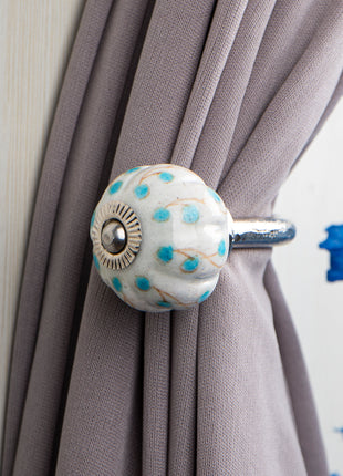 Curtain Tie Backs Hook Decorative Wall Hook-Turquoise Dots (Set of Two)