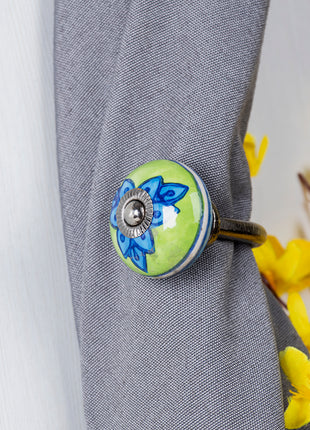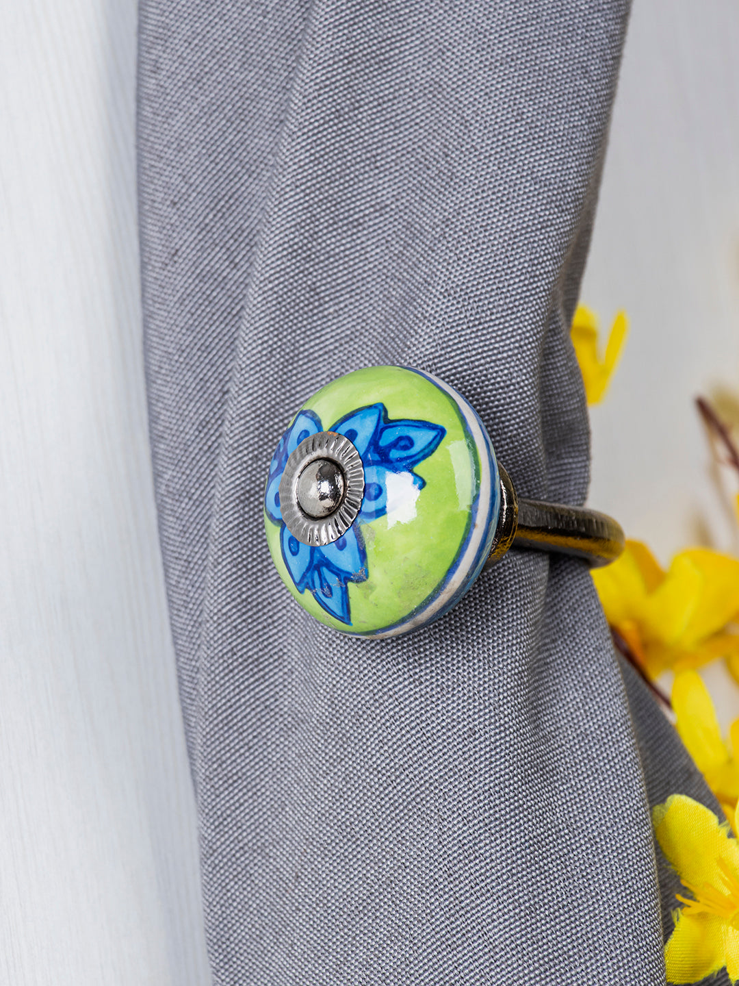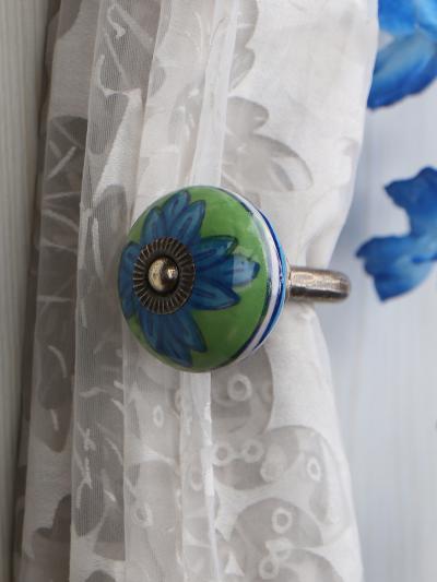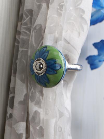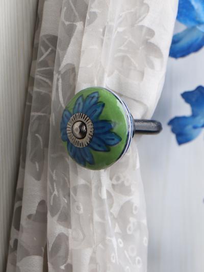 Curtain Tie Backs Hook Decorative Wall Hook-Turquoise Flower (Set of Two)
