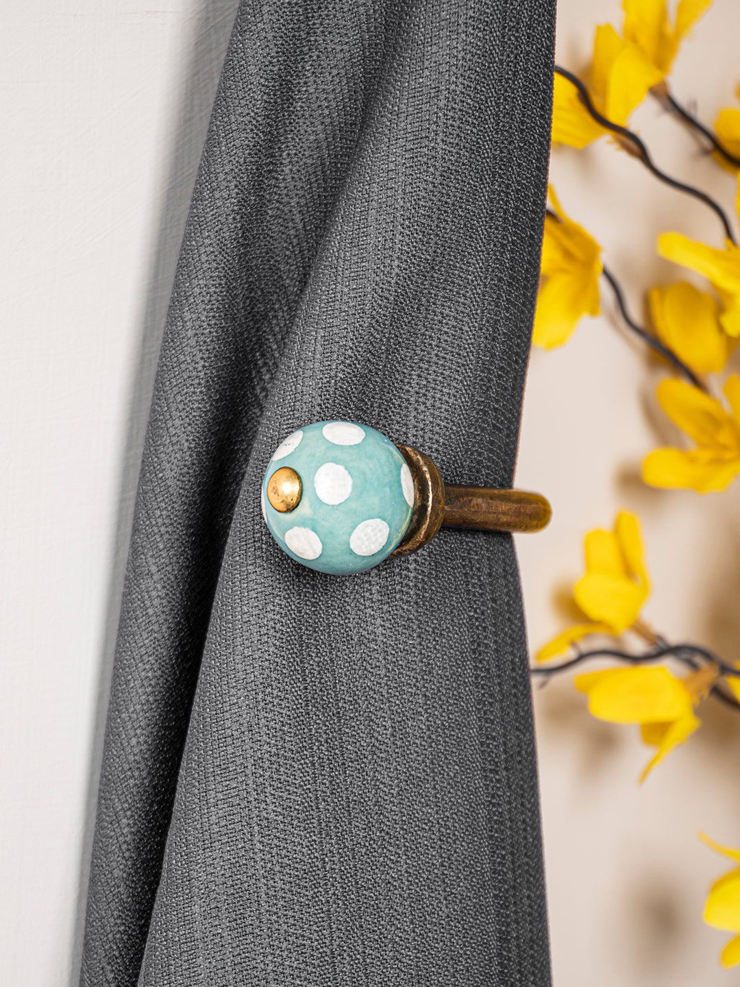 Curtain Tie Backs Hook Decorative Wall Hook- Turquoise (Set of Two)