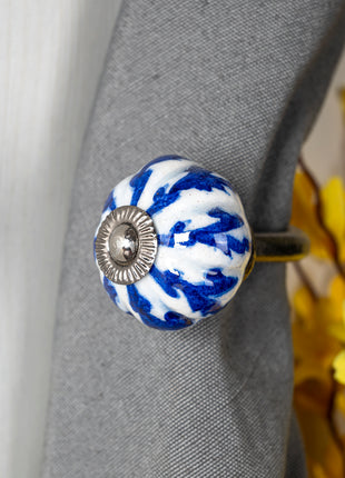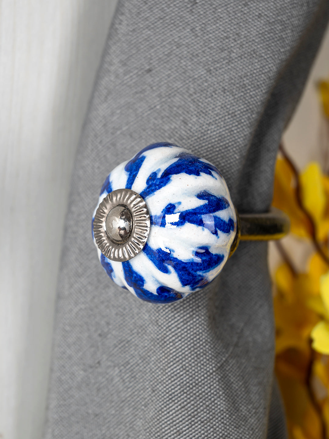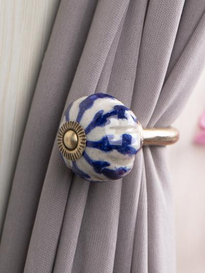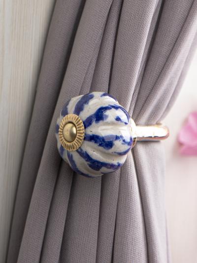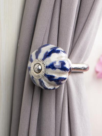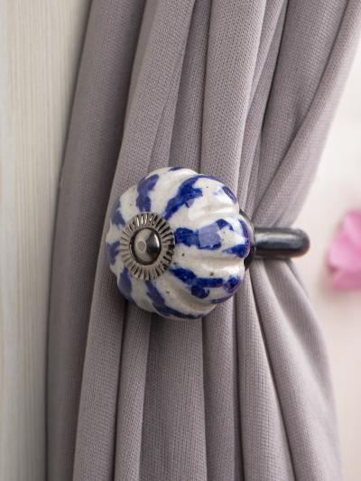 Curtain Tie Backs Hook Decorative Wall Hook- White Base, Blue Leaf (Set of Two)