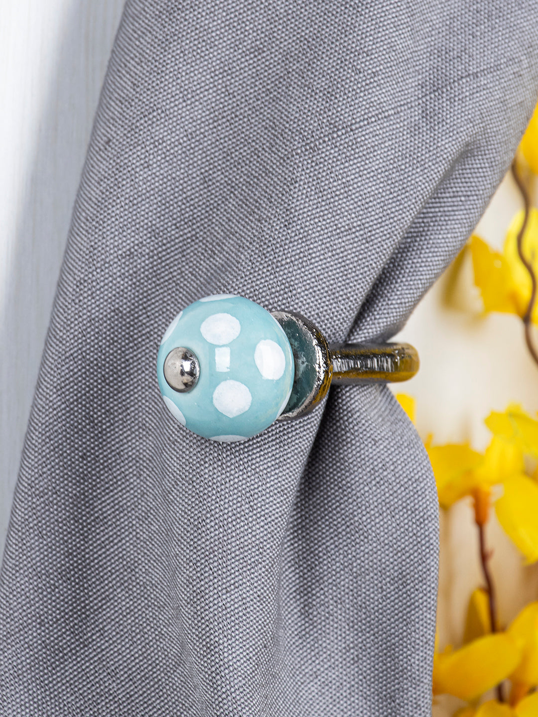 Curtain Tie Backs Hook Decorative Wall Hook- White Dots and Turquoise Base (Set of Two)